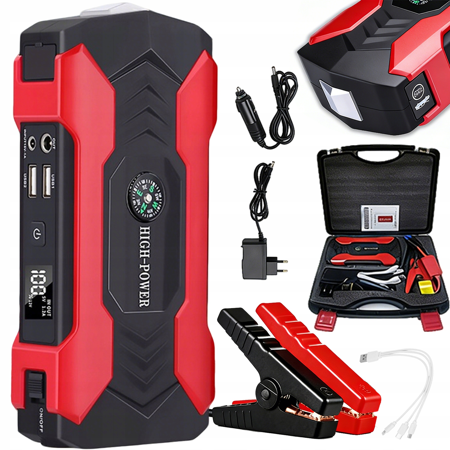⭐Набір кабелів для ліхтарика-молотка Power Bank Jumper Jump Starter 28000 мАг з портативним жорстким футляром⭐