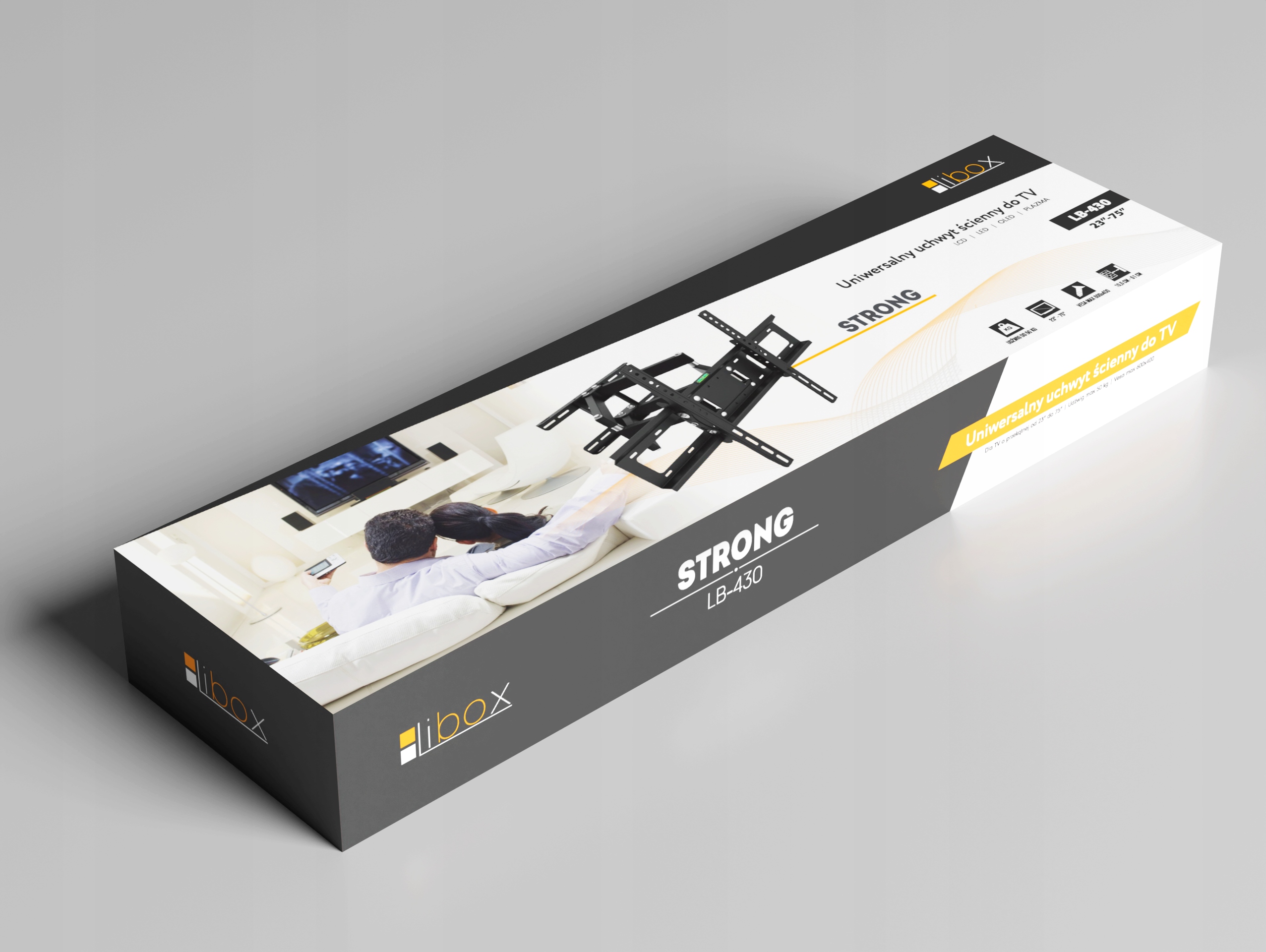 Настінне кріплення STRONG LB-430 LIBOX — це міцне сталеве кріплення для телевізорів і рідкокристалічних/світлодіодних моніторів із діагоналлю екрана від 23 до 75 дюймів. Завдяки сучасному дизайну це кріплення дає змогу встановити телевізор на мінімальній відстані від стіни, що робить екран близько та елегантно інтегрований у оточення.