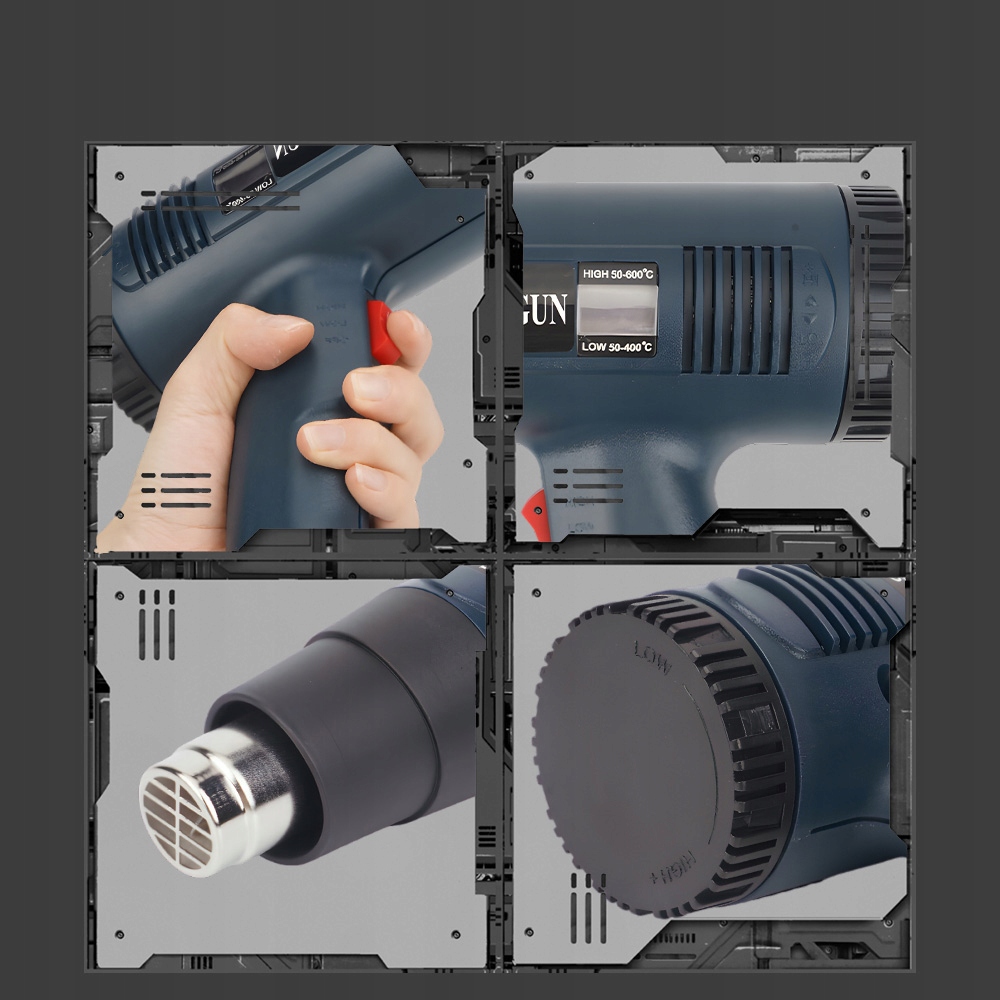 - Існують два режими регулювання потоку повітря. Низька установка: 50-400 ℃, 210-350 л/хв, висока настройка: 50-600 ℃, 300-600 л/хв. Потужна сила 2000 Вт дозволяє легко виконати завдання в домашніх умовах. 4 Чорний щит забезпечує нагрівання Reostat, а перемикач високого/низького рівня на ручці забезпечує управління потоком повітря. Діапазон температури від 122 ° F до 1202 ° F; Побудований захист від перевантаження вимикає нагрівальний елемент і заважає йому спалювати. 4 Побудована підтримка збільшує комфорт і зменшує втому вручну під час тривалого використання. Його можна розмістити вертикально на стільниці або майстерні. Ідеально підходить для скорочення труб, упаковки тепла, опалення ПВХ, електроніки, ремонту мобільних телефонів, видалення фарби або плитки для підлоги, відкручення іржавих гвинтів та інших застосувань, пов'язаних з опаленням або відтаванням.