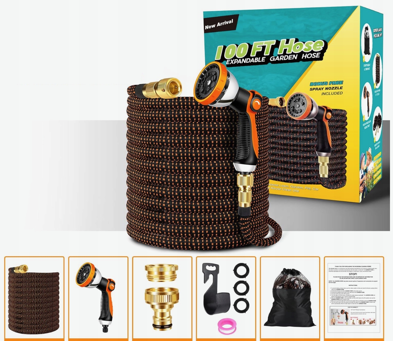 Сильний садовий шланг гнучкий 30 -метровий розтягнутий рулон + пістолет + фурнітура