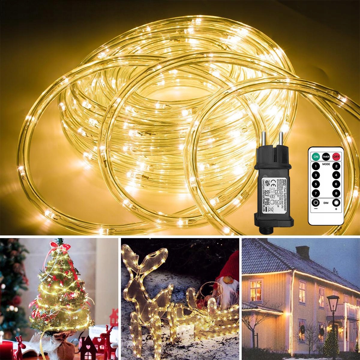 Світлодіодна стрічка для зовнішнього освітлення має водонепроникність за стандартом IP65, що означає, що наші ланцюгові світильники стійкі до бризок води, тому ви можете без проблем використовувати їх на вулиці. Світлову гірлянду можна залишити на вулиці під час дощу. Будь ласка, зверніть увагу, що рейтинг водонепроникності цієї вилки становить IP44, її не можна занурювати у воду.