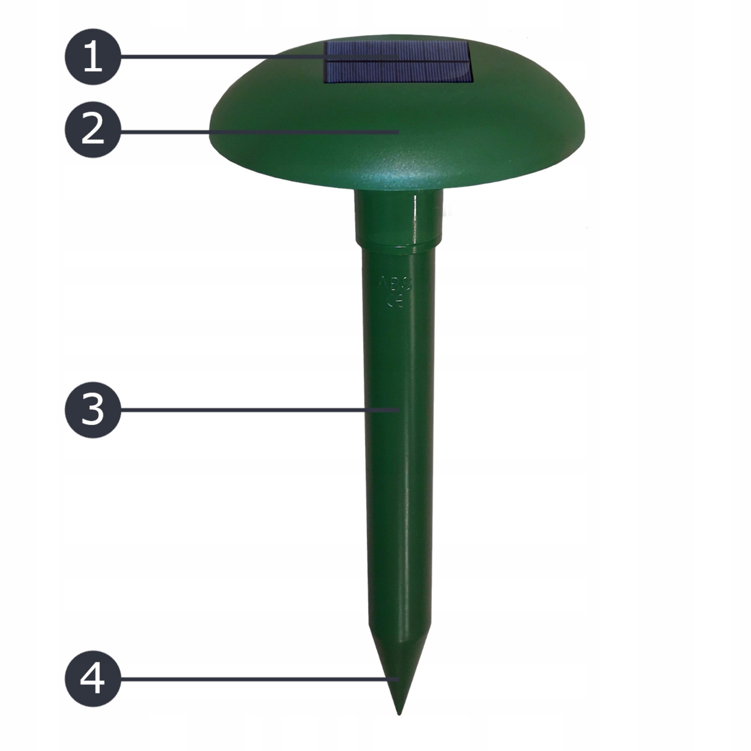 Ультразвуковий відлякувач тварин використовує принцип ультразвукових коливань і вібрацій: відлякувач посилає ультразвукові хвилі з діапазоном частот 400 - 1000 Гц. Ультразвукові хвилі цього діапазону частот подразнюють органи слуху та нервову систему тварин, таких як кроти, полівки, щури, миші, куниці, гризуни, і ми хочемо, щоб вони уникали визначеної ділянки газону, саду чи ділянок. Імпульси, що утворюються таким чином, відлякують тварин. На домашніх або сільськогосподарських тварин пристрій не діє.Відлякувач, вставлений у землю, видає звуки зі змінною частотою. від 400 - 1000 Гц. Домашні тварини не можуть звикнути до пристрою. Ультразвукові хвилі супроводжуються коливаннями всередині штифта.