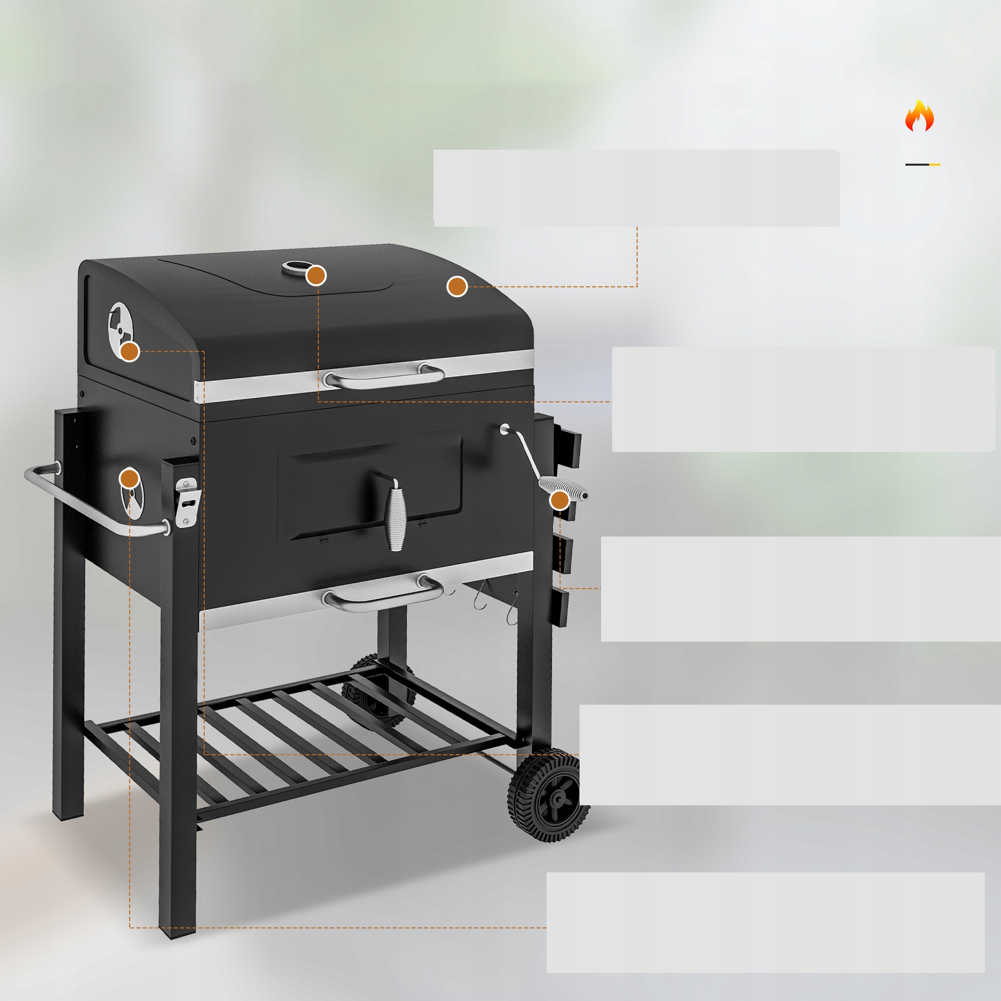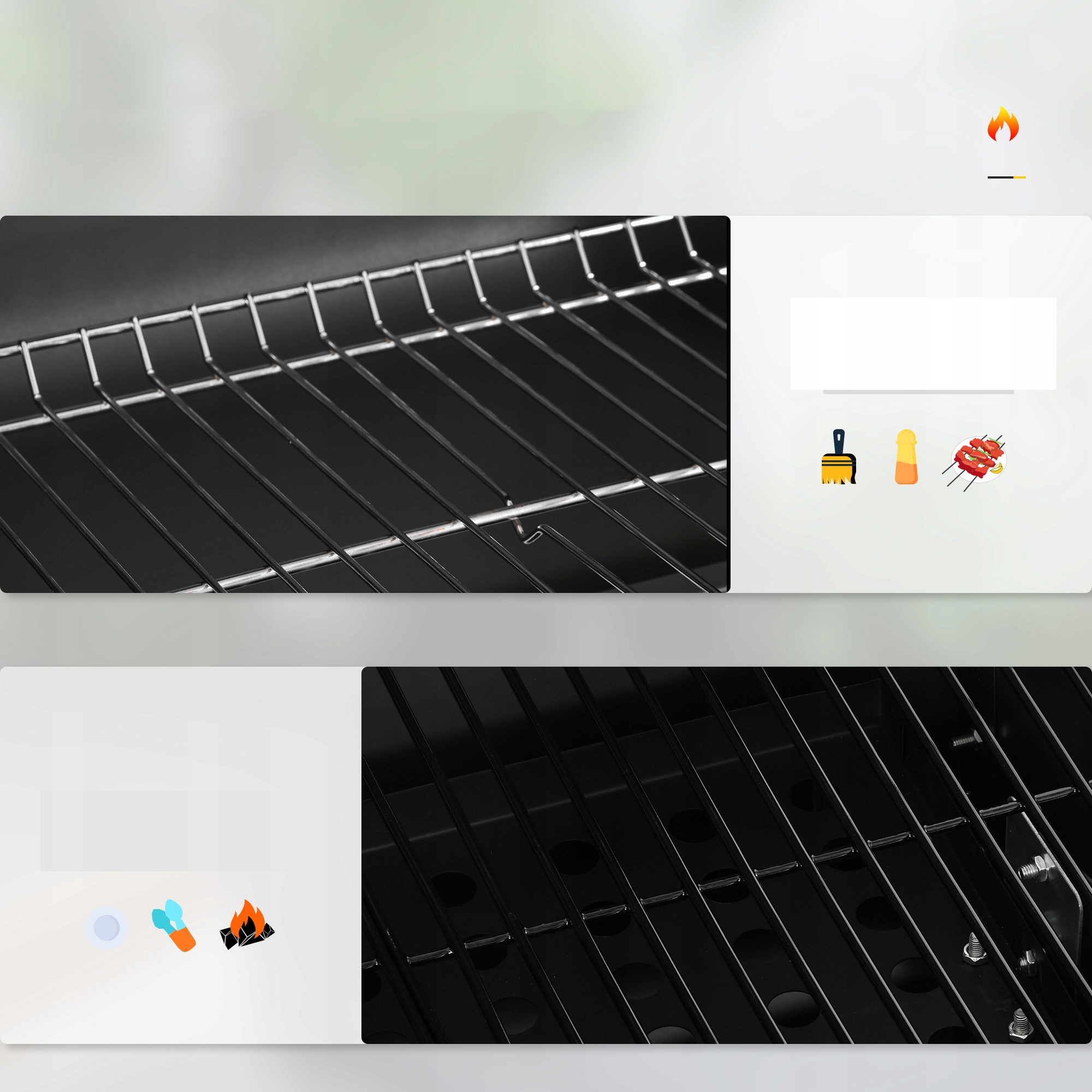 ⏩ Виробництво контролю температури: перегородка деревного вугілля регулюється до висоти, повернувши ручні кривошипи, а деревне вугілля може бути легко доповнене передньою клаптом. Контролювати внутрішню температуру.