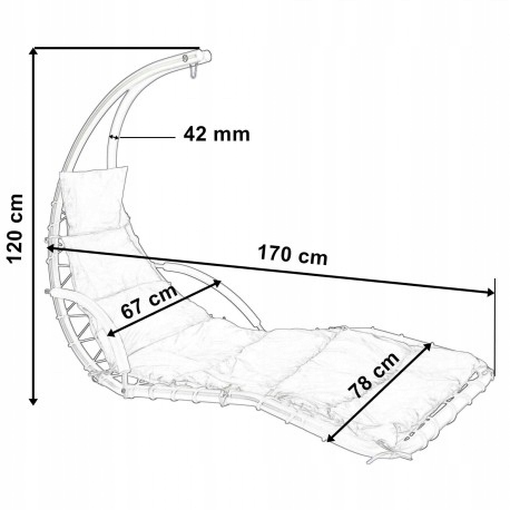 - Розміри сидіння: 120 см (висота) x 170 см (довжина) x 78 см (ширина)