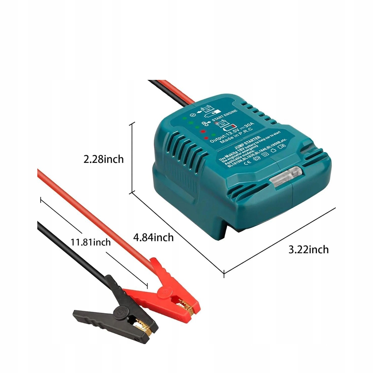 Затискачі акумуляторів Makita 18 V (BL1815, BL1815B, BL1820, BL1820B, BL1830, BL1830B, BL1840, BL1840B, BL1850, BL1850B, BL1860, BL1860, BL1860, BL1860B, BL1860B, BL1860B, BL1845, BL1890, BL1890B тощо), батареї не включені! Ідеально підходить для середніх автомобілів із встановленням 12 В, легким фургоном та легкими відпочиваючими (не підходить для акумуляторів автомобілів 24 В).
