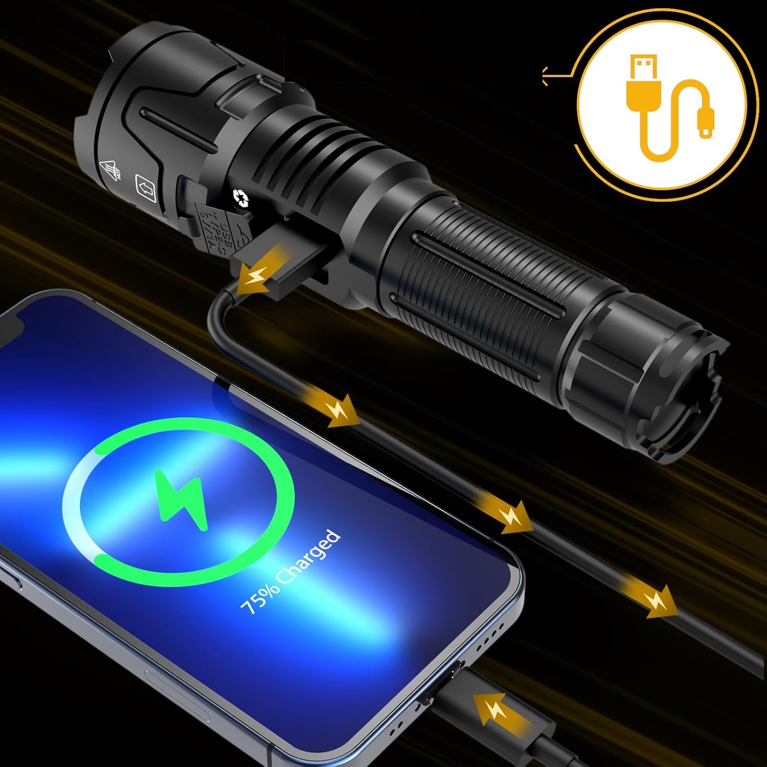 світлодіодним ліхтариком з можливістю зарядки оснащений новим, вдосконаленим цифровим РК -екраном, який показує решту потужності. Це революційні інновації, які не в інших ліхтариках. Крім того, система зарядки ліхтарика була повністю перебудована, щоб скоротити час зарядки та продовжити своє життя. Він пропонує можливість живити ваш телефон в надзвичайних ситуаціях - це справді універсальний світлодіодний ліхтарик.