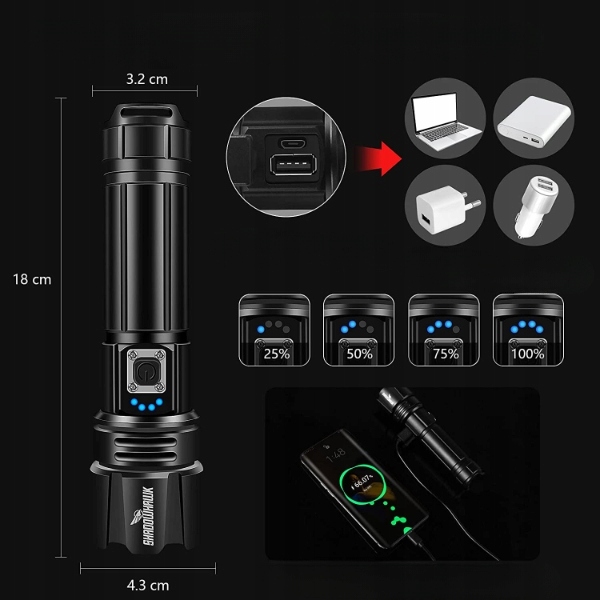 Сильний тактичний ліхтарик 10 000 USB -військових люменів