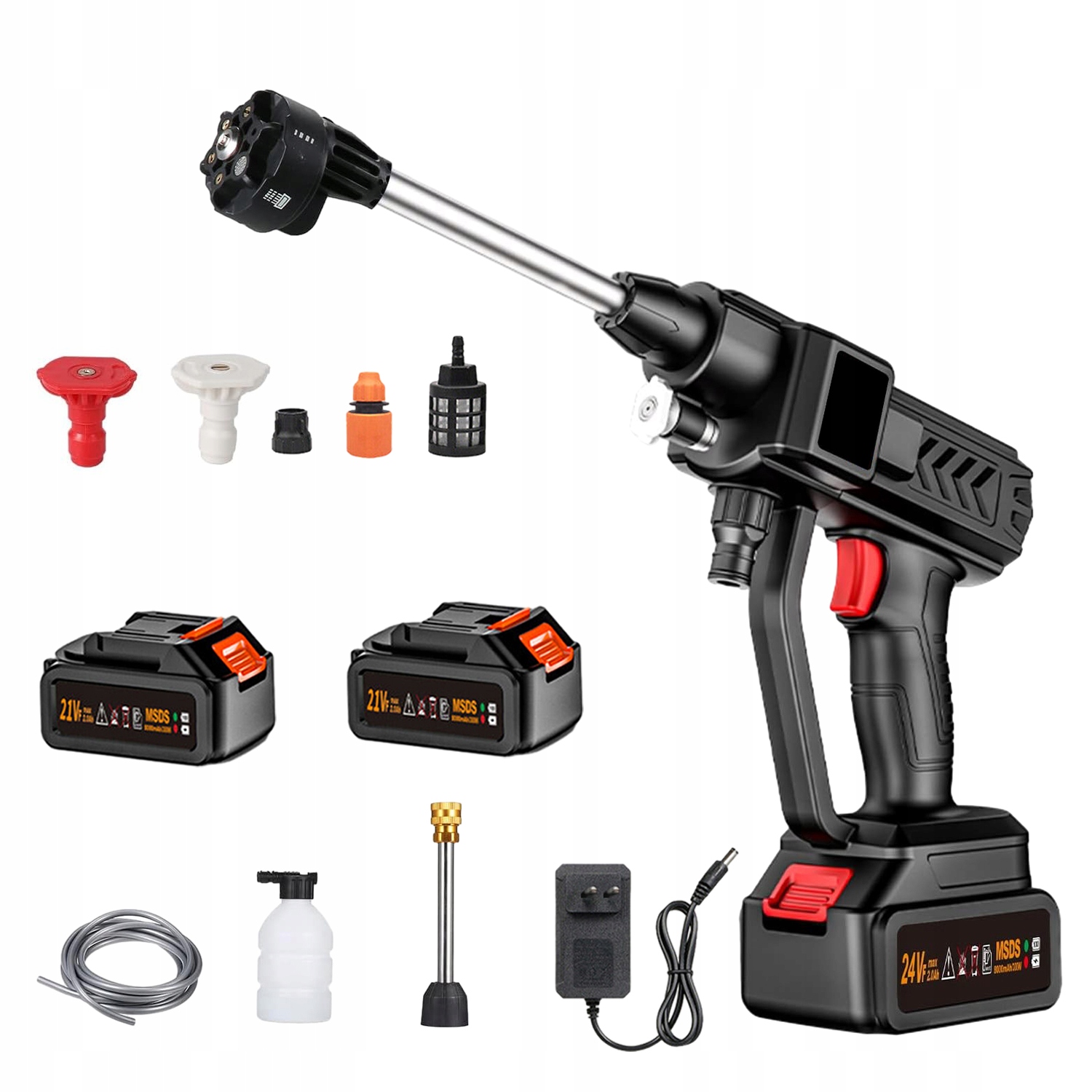 Сильний тиск акумулятора 21V 30BAR SET + 2 AKU + 6IN1 насадки