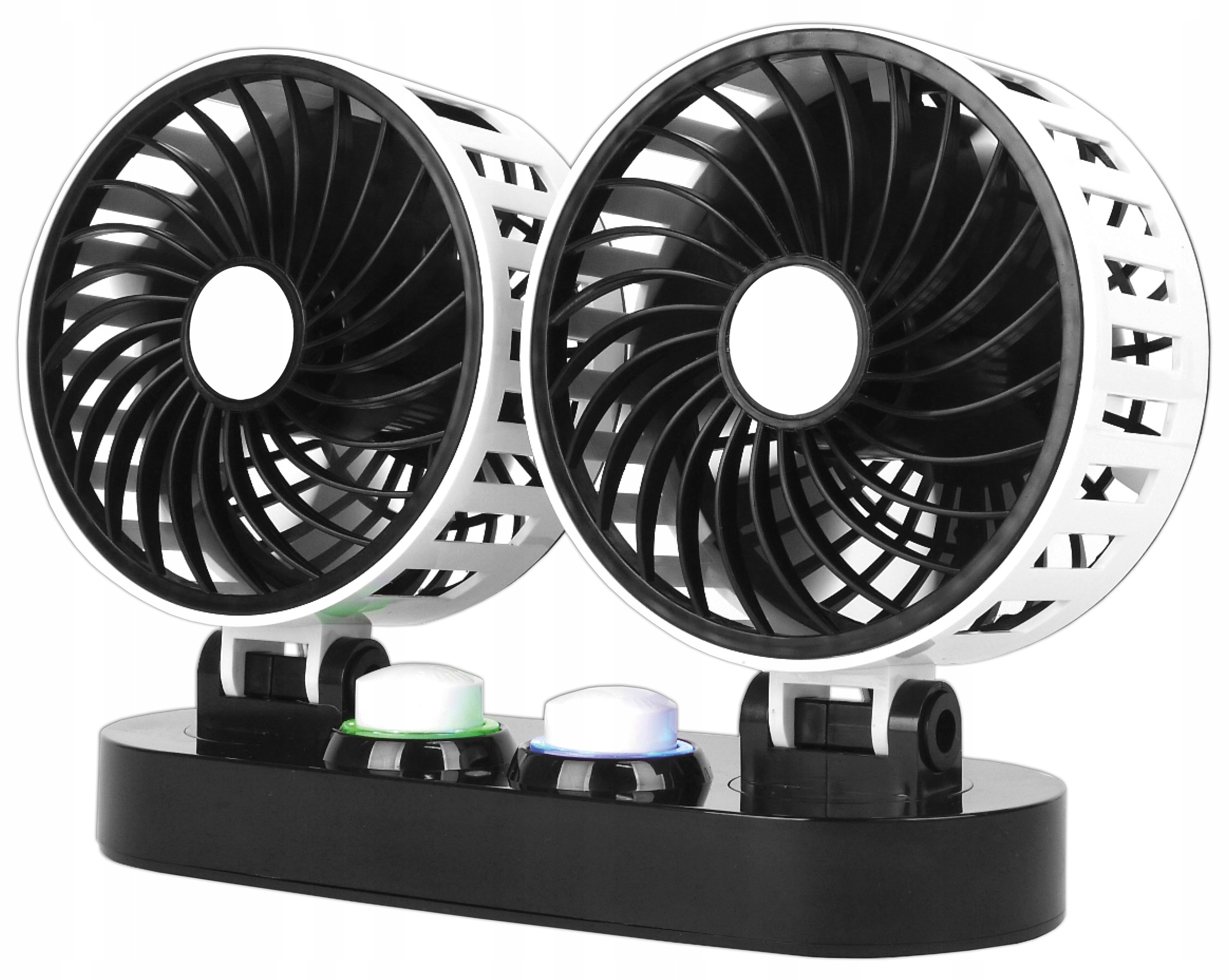 вентилятор оснащений двома незалежними ручками , що дозволяє гладке регулювання сили дмулю для кожної миски окремо. Завдяки цьому користувач може налаштувати налаштування до своїх налаштувань - наприклад, встановіть один вентилятор на максимальну потужність , а другий до делікатного потоку повітря . Це рішення забезпечує більший контроль над охолодженням та комфортом використання в різних умовах.