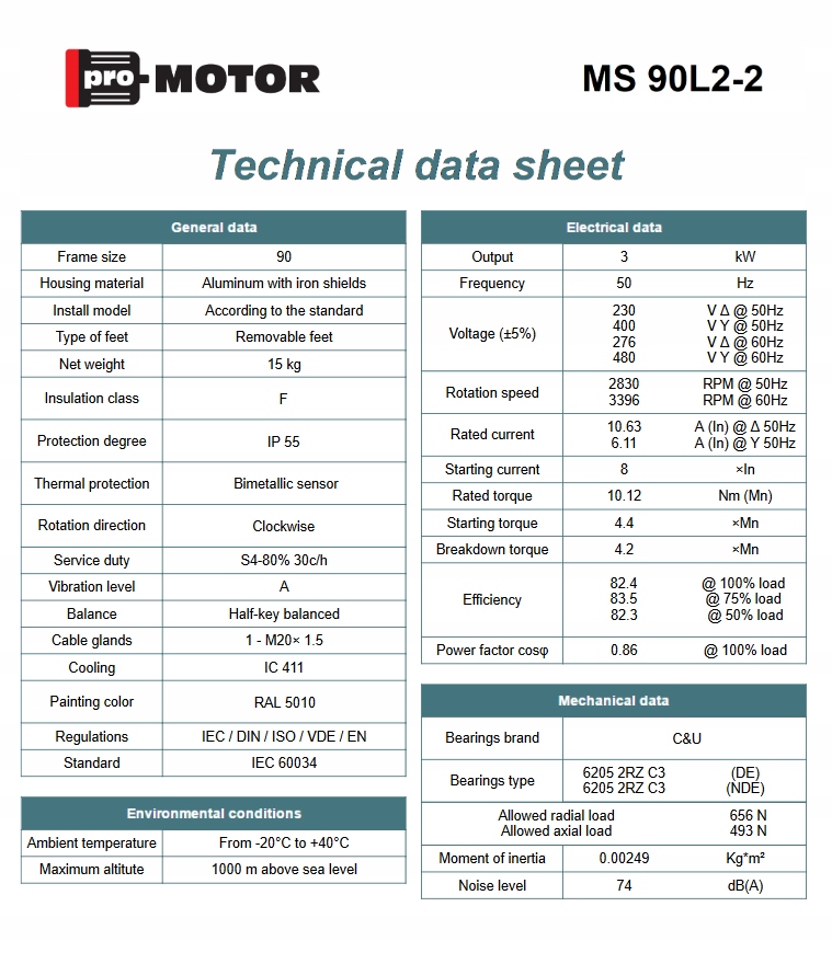 Silnik elektryczny Promotor MS 3,0kW 3kW 2800 obr/min. 90 B5