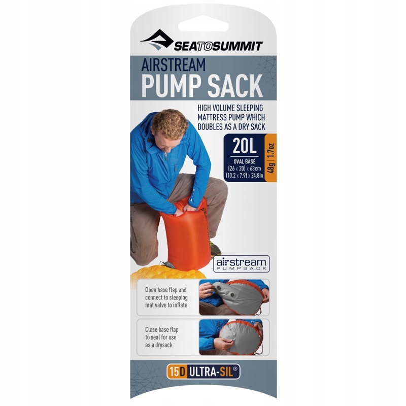 море- це мішок насоса повітряного потоку Summit - двофункціональний насос, який дозволяє швидко надути матрац, але також може використовуватися як 20-літровий водонепроникний мішок. Завдяки можливості наповнити насос лише одним диханням та петлею, що стабілізує надувний матрац на нозі, буде ще простішим і швидшим.