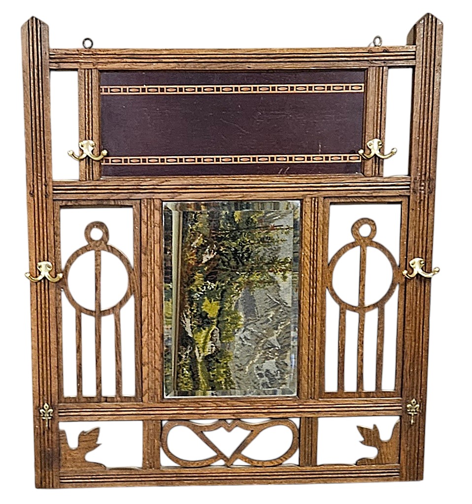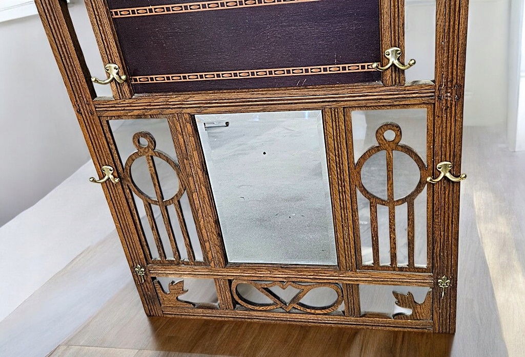 Дуже елегантна вішалка. Виготовлений з деревини дуба в рустикальному кольорі дуба; має гачки для підвішування, в бічній лівій частині є практичне дзеркало - стан вішалки дуже хороший.