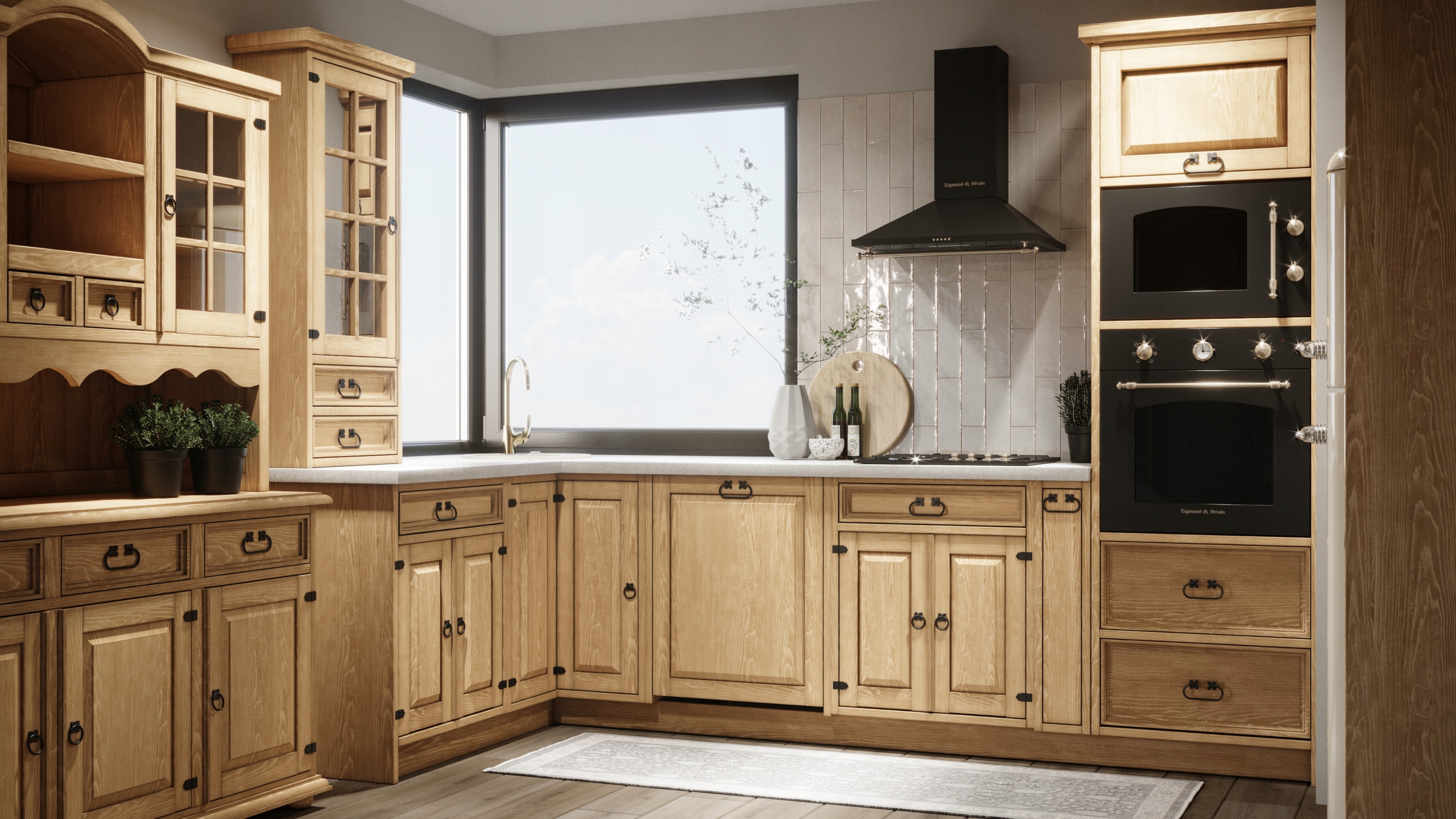 Rustykalna kuchnia z litego drewna, meble kuchenne retro