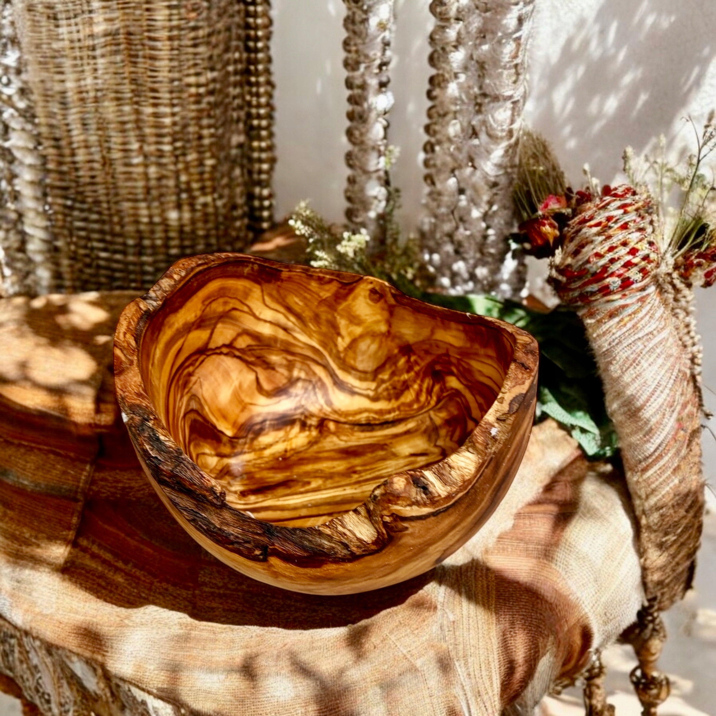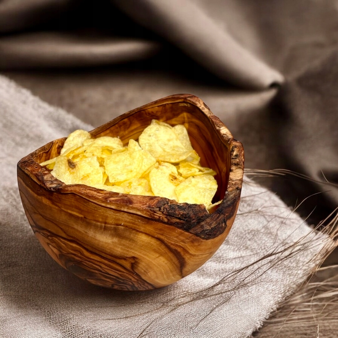 Відкрийте унікальну красу натуральної оливкової деревини з нашою елегантною мискою, ідеально підходить для закусок, горіхів та невеликих частувань. Вироблена вручну з найвищої якості оливкової деревини, миска вражає своєю унікальною сільською текстурою та теплим природним відтінком. Надзвичайно довговічна і доброзичлива у використанні, чаша з оливковою деревиною чудова як щодня, так і в особливих випадках, підкреслюючи природний стиль вашого столу. Ідеально для закоханих аксесуарів для дому.