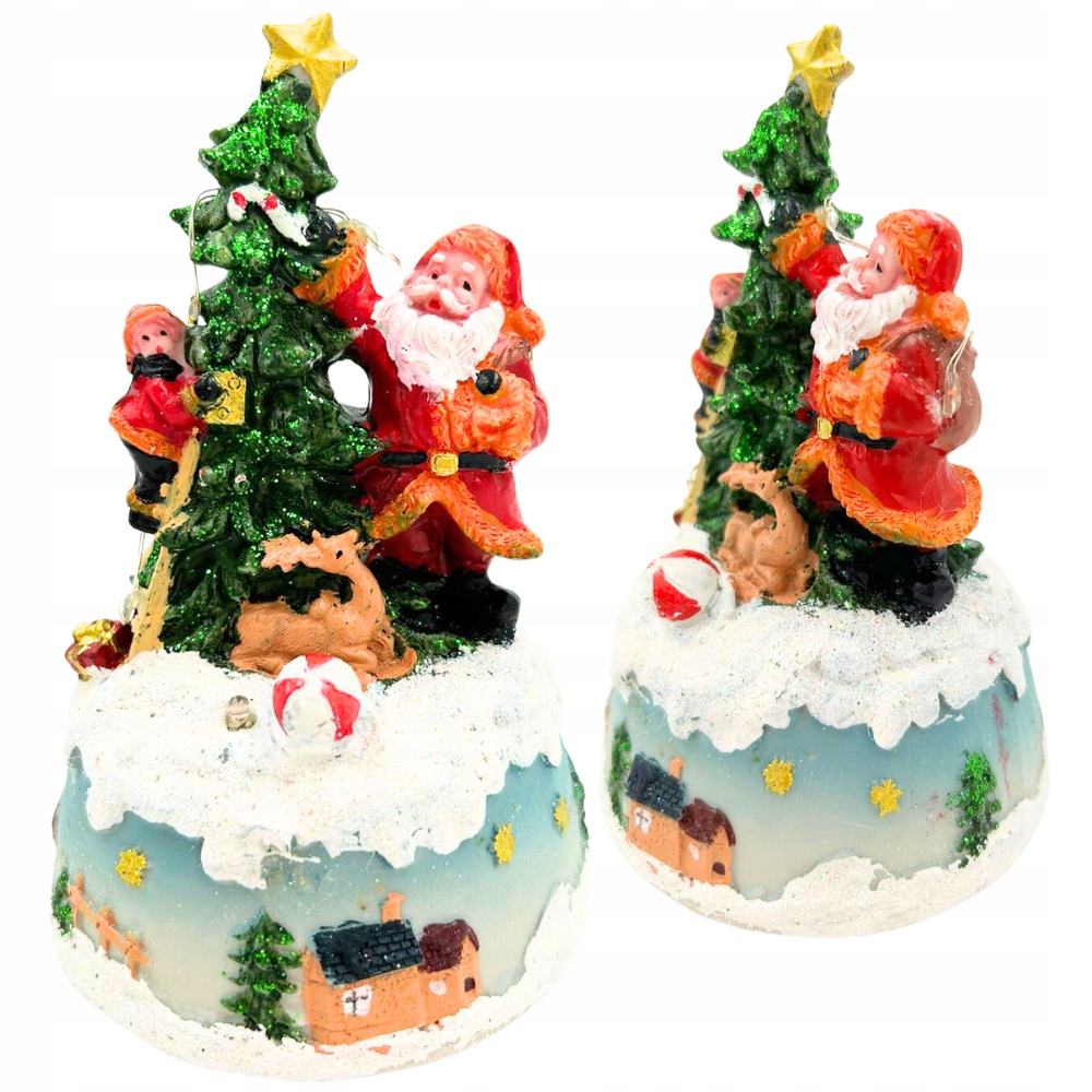 ✅ Різдвяна сцена з Санта-Клаусом, який прикрашає ялинку, блиск, світлодіодне освітлення X 5.