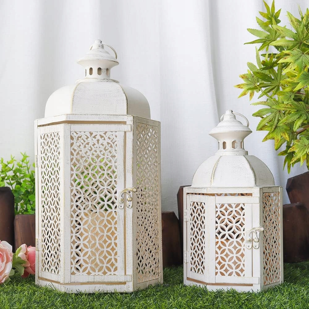 - 【Універсальний розмір для більшості випадків】 Великий розмір: 19 см завдовжки х 17 см ширина x 37 см висота, 40,5 см заввишки з петлею. Невеликий розмір: 15 см завдовжки х 13 см шириною х 27 см заввишки, 32 см заввишки з петлею. Підходить обігрівачі, справжні свічки, обручі свічки або маленькі свічки стовпа до 7,5 см х 10 см і 10 см х 15 см. Сільське прикраса для інтер'єру та зовні - ідеально підходить для вітальні, спальні, ванної кімнати, їдальні, як камін, прикраса столу, двір, стежки, проїжджу дорогу, полиці, внутрішній дворик, ганок тощо
