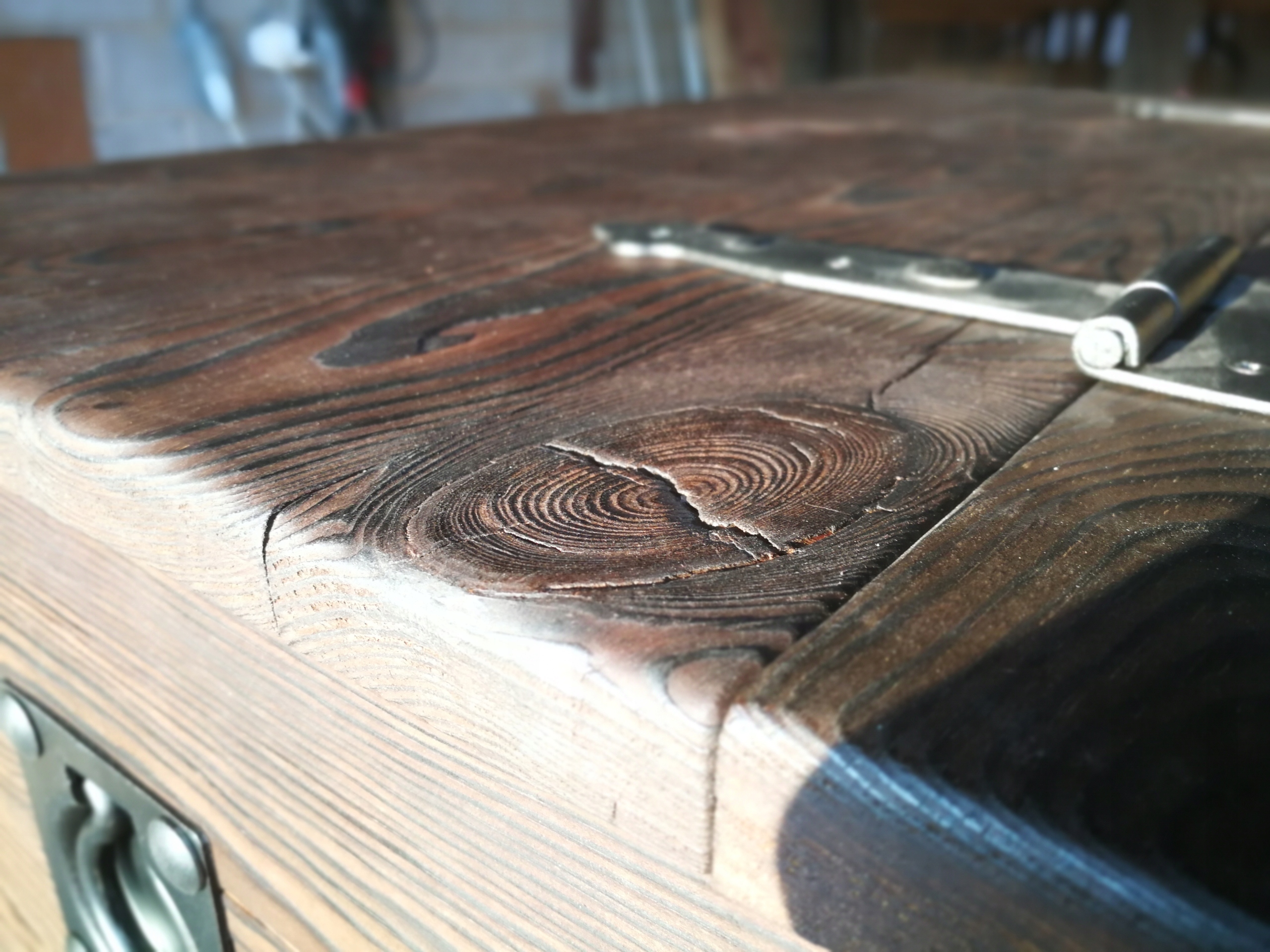 Тема пропозиції - це суцільна коробка, виготовлена з суцільної сосни, виготовлена спеціальним методом старіння деревини (куріння вогню) - виділені банки та споруда. Колір, отриманий стріляниною, плутає лише з деревним воском, який надає генерінській глянцевій коробці передач, супер приємний на дотик (на фото). Розміри, звичайно, на запит клієнта. Коробка передач надсилається повністю, ви не витрачаєте час на скручування. Сильний, суцільний корпус, дошки товщиною близько 18 мм, він скручений гвинтами і склеєними. Його можна використовувати як меблі для передпокою, вітальні, спальні, контейнер для альтанок, тераса - для подушок, садових аксесуарів тощо, лава, сидіння, стіл або контейнер для іграшок. Ви також можете використовувати його як стильну таверну, корчму тощо ... у коробці передач, можливо, є колеса, які можуть бути невидимими. Ціна задається ціною за розміри поданої коробки передач (ширина 80, глибина 35, висота 40), залежить від розмірів та методу оздоблення коробки передач. If you are interested in such a piece of furniture but in other sizes, appearance or finish, then you can agree in advance (Da, they are in - "dos taawy and pay, three at the bottom of the announcement). I issue an invoice without VAT (unregistered activities).