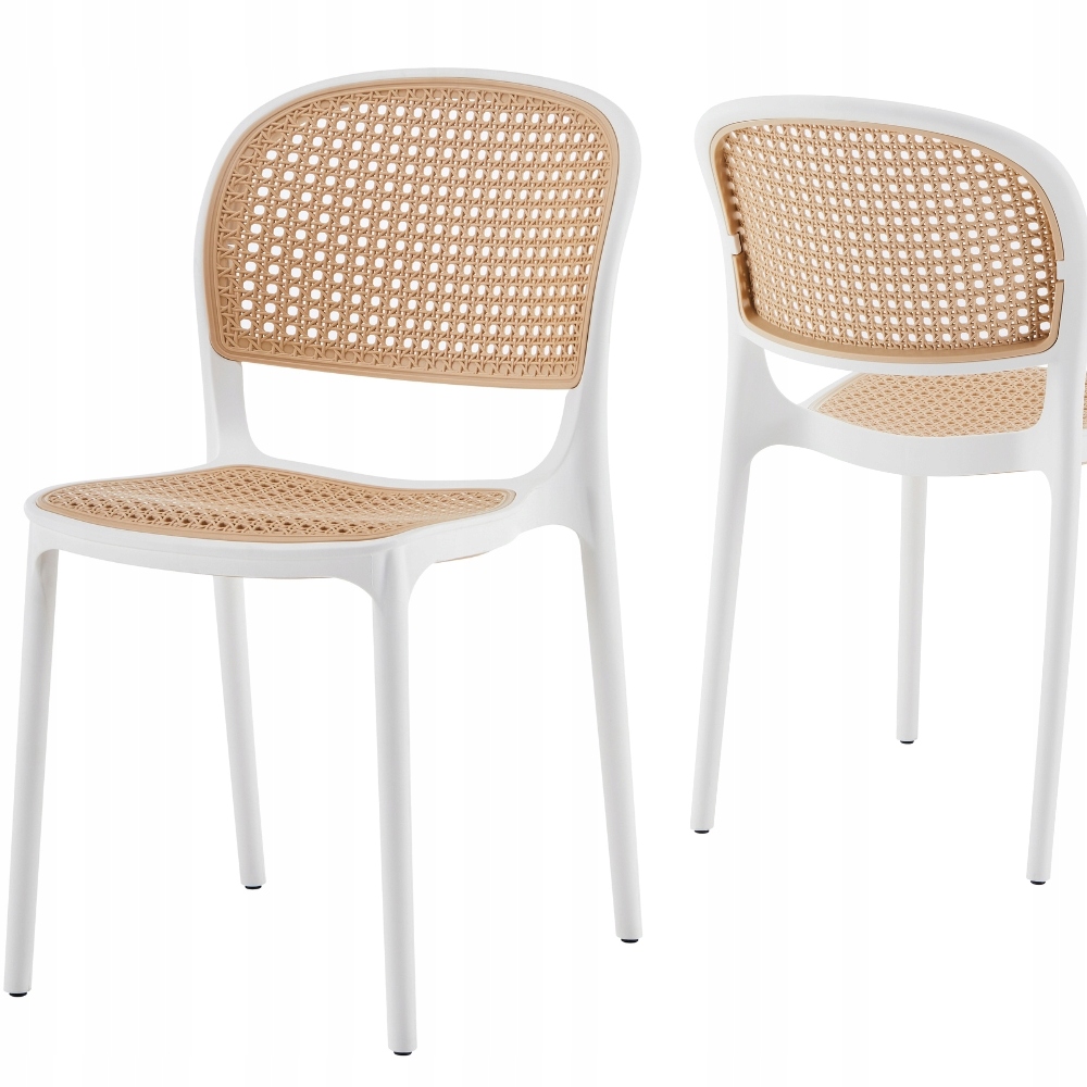 стілець відрізняється класичною, легкою формою та тонкими кольорами. Білий кадр - це елегантна основа для бежевої коси, яка була відтворена в сучасній технології, використовуючи міцний пластик. Візуальний ефект нагадує класичний ротанг, забезпечуючи значно більшу стійкість до зносу та простоти догляду.