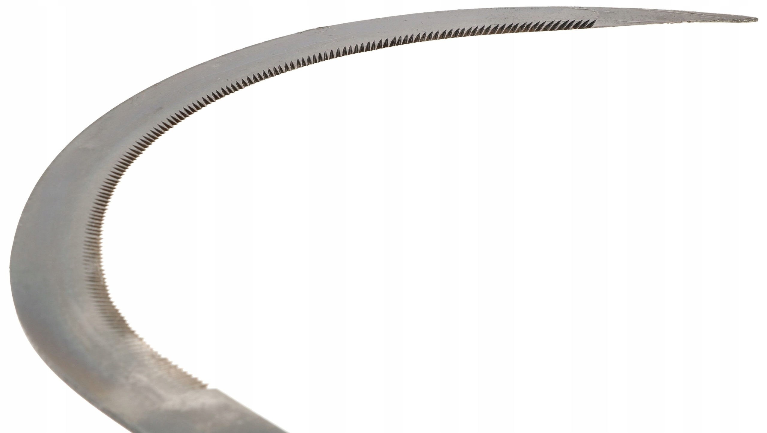 - Серп має зубчасте, округле лезо. що полегшує роботу та запобігає швидкому затупленню інструменту.