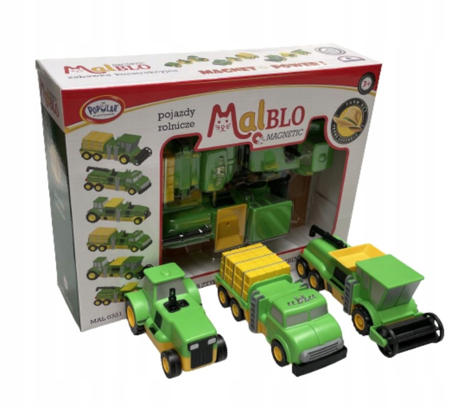 - Набір складається з 9 елементів, з’єднаних за допомогою вбудованих магнітів (3 готові транспортні засоби), що дозволяє створювати понад 100 різних комбінацій у наборі.