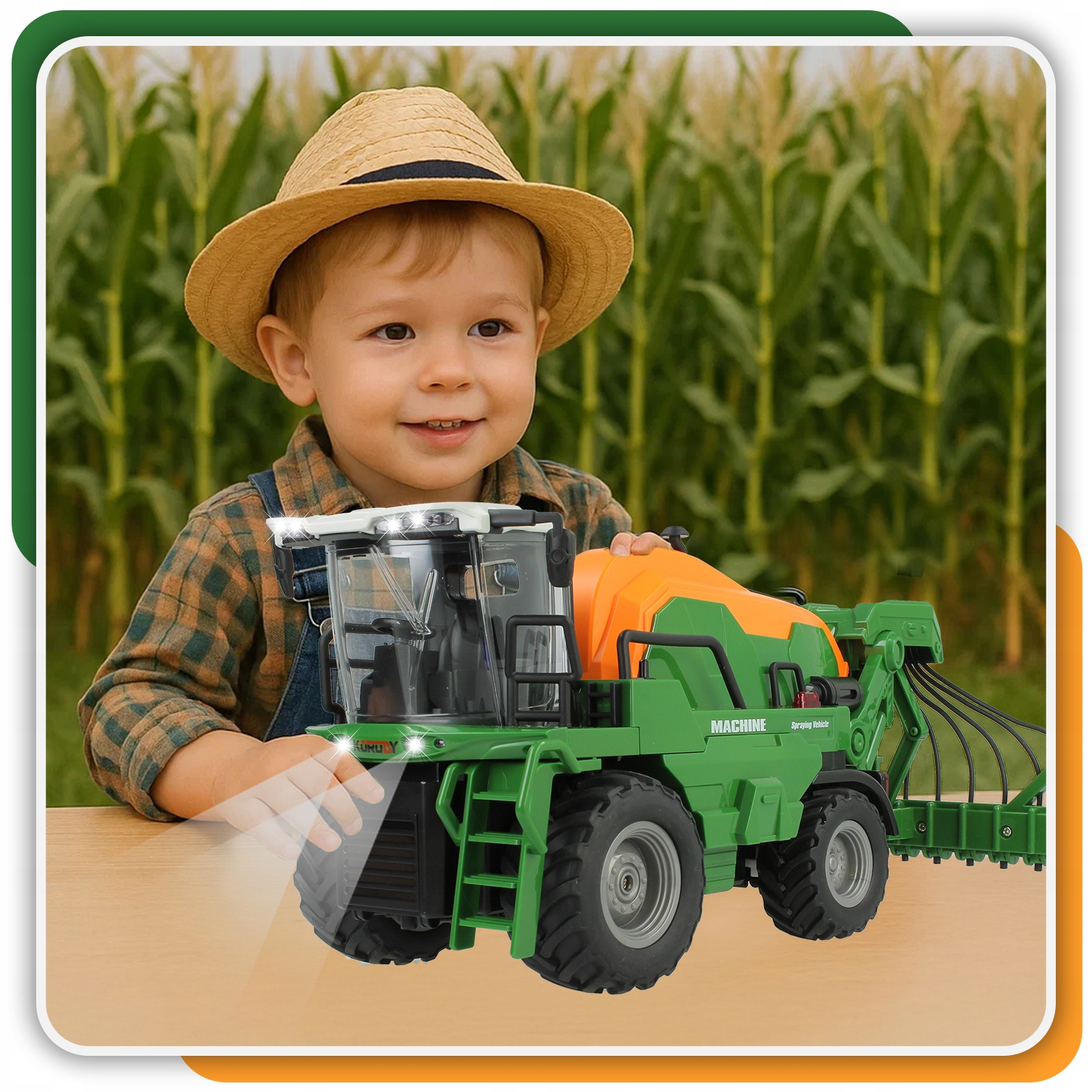 Цей реалістичний трактор з розпилювачем є справжнім частуванням для кожного маленького любителя сільськогосподарських машин. Світлодіодні світильники, звуки двигуна та робочий розпилювач зроблять задоволення захоплюючою пригодою. Це ідеальна ідея для подарунка, який довго радує та приверне увагу дитини!