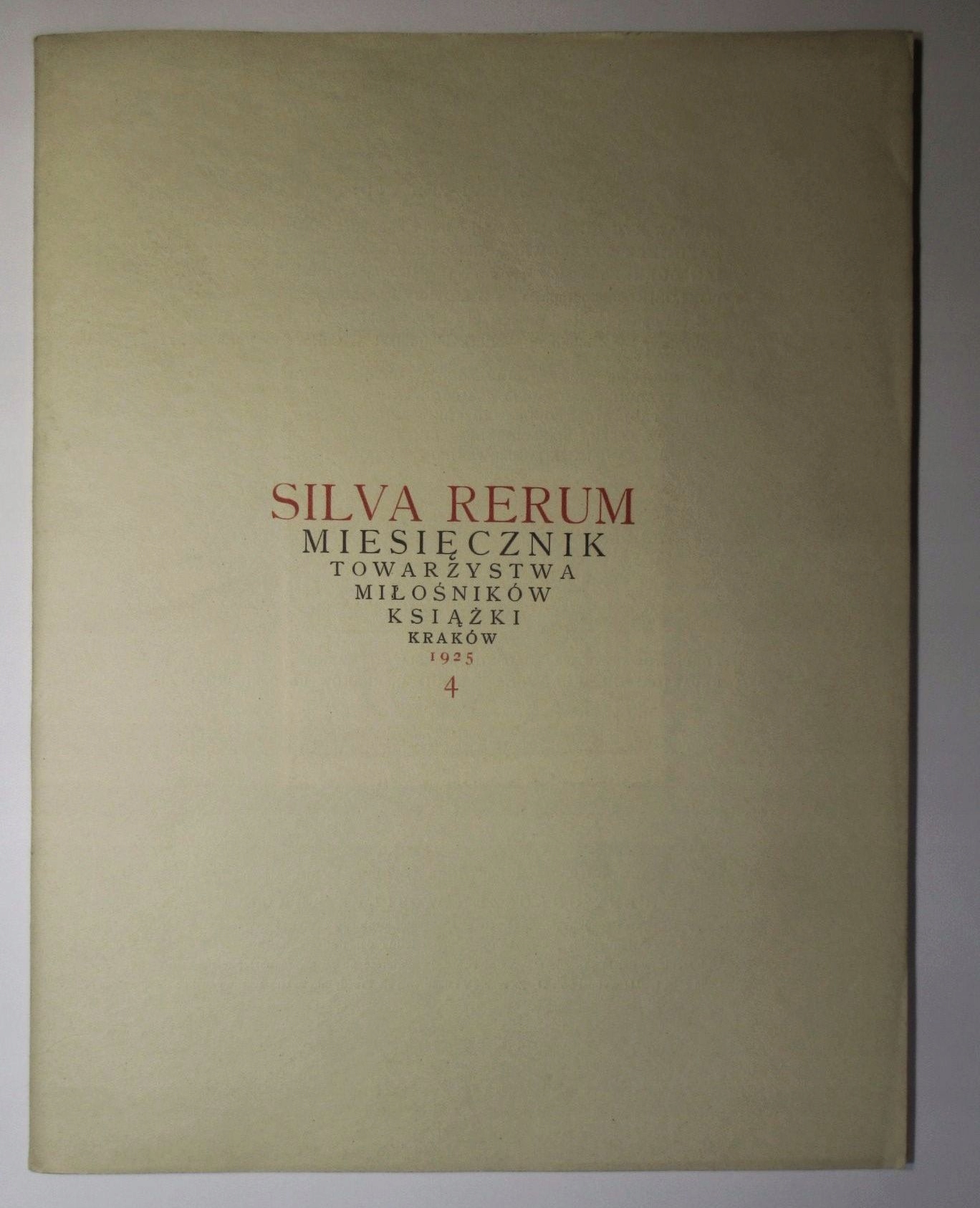 - Silva Rerum, № 4 1925, місячник Товариства книголюбів у Кракові