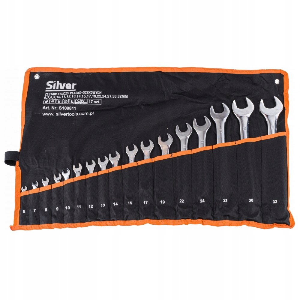 SILVER КІЛЬЧІ ВІДКРИТІ ГАЙКОВІ КЛЮЧІ 17 шт. 6-32 мм НАБІР ПЛАСТИНИ В ПЛОСКОМУ КОНСУЛІ