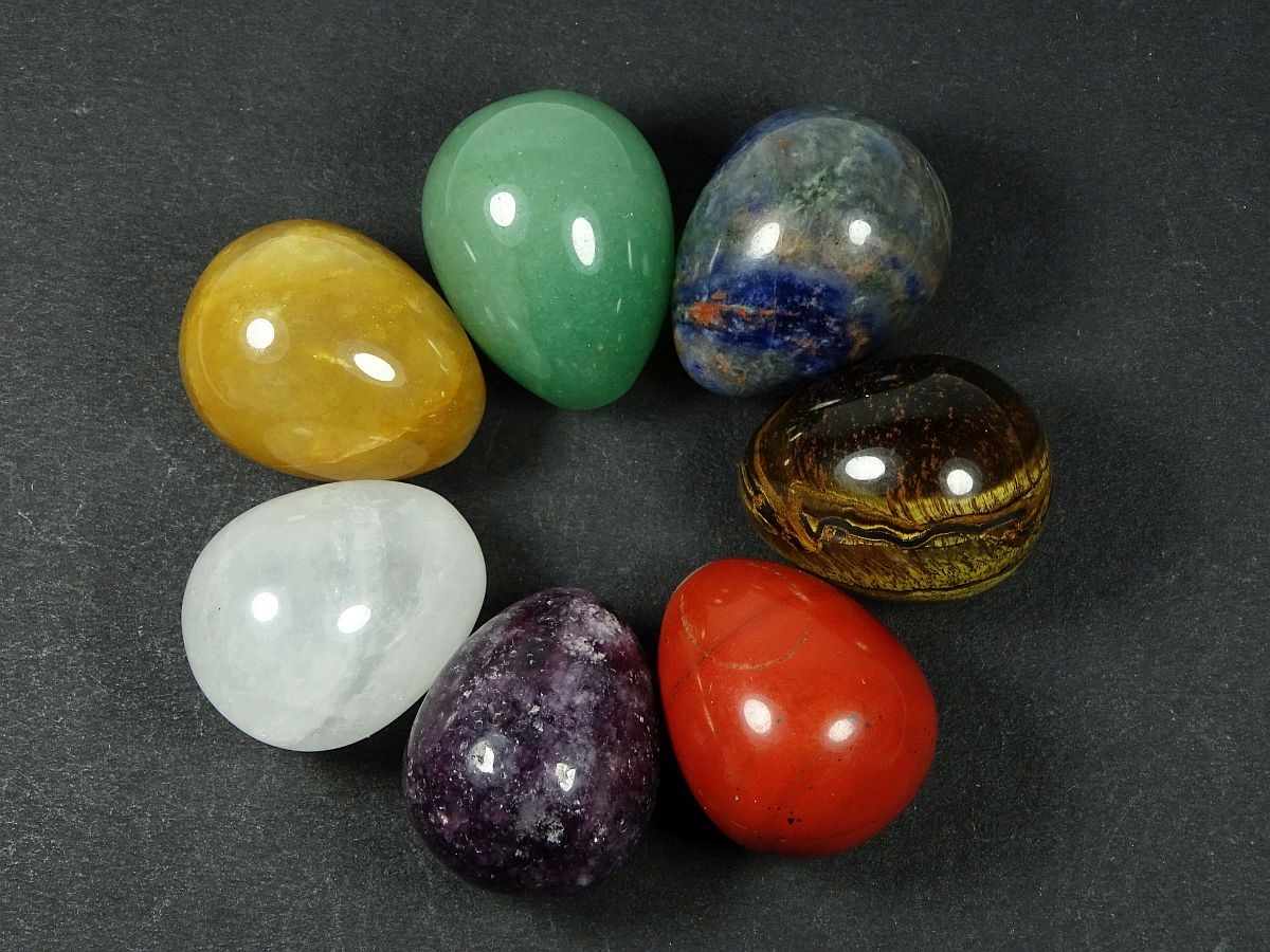 Сім чакр. Набір із 7 кам'яних яєць. Натуральний камінь 245ag