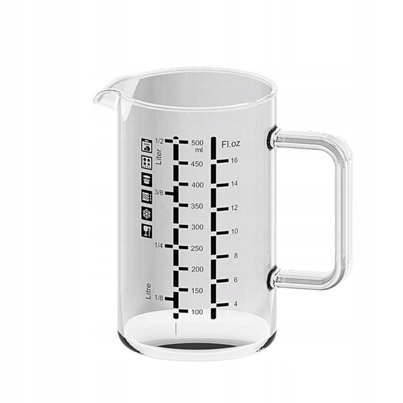 Глечик скляний з мірним стаканом виготовлений з високоякісного термостійкого скла, яке витримує температуру від -40°C до 300°C, призначене для контакту з харчовими продуктами. Скло SIMAX має високу стійкість до хімічних речовин; він гладкий і непористий, ідеально прозорий і стійкий до корозії. Скляна мірна чашка має місткість 0,5 л.