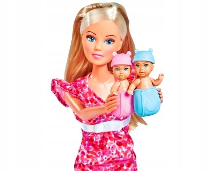 Гра захоплююча тим, що ви не знаєте, якої статі народиться дитина. Це буде хлопчик, дівчинка чи, може, близнята? Ми дізнаємось під час гри після того, як розпакуємо ляльку. Гра з вагітною Штеффі та її новонародженою дитиною або немовлятами є уроком емпатії та дозволяє дівчині взяти на себе роль відповідального піклувальника. Пропозиція ляльок із серії Штеффі дуже широка і включає в себе різні ляльки з багатими і точно виготовленими аксесуарами, а також набори ляльок з автомобілями, інтер'єром і атрибутами, пов'язаними з роботою. Лялька Штеффі одягнена в сукню та туфлі.