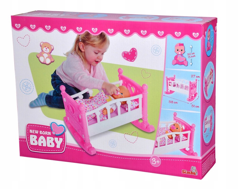 Набір включає колиску розміром 38 x 27 x 31 см , ідеально підходить до ляльок до 30 см завдовжки, а також м'якої подушки та ковдри , що означає, що кожна лялька може відпочити в повному комфорті. Завдяки своєму дизайну, колиска обережно гойдається, як справжнє дитяче ліжечко.