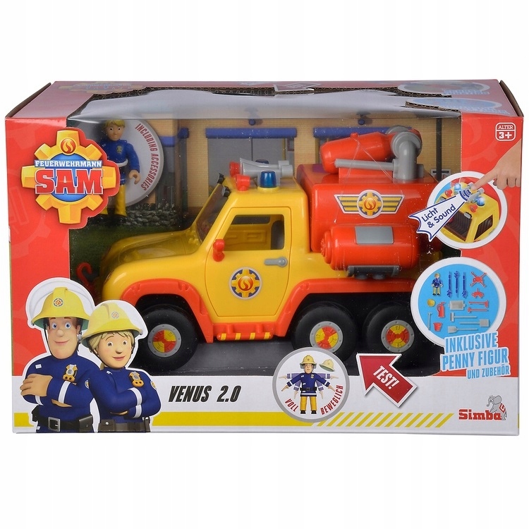 Пожежна машина Venus 2.0 з останнього 13-го мультсеріалу про відважного героя. Автомобіль має світлові та звукові функції, які збагатять задоволення від гри в рятувальну місію. Завдяки функції стрільби водяною стрілою можна загасити пожежу навіть у висотній будівлі. Двері, що відкриваються, дозволяють фігурці Пенні, що входить у комплект, підвезти автомобіль до місця аварії. Багажник, що відкривається, і висувний відсік містять усі аксесуари, необхідні для гасіння будь-якої пожежі. Фігурка пенні з рухомими руками та ногами.