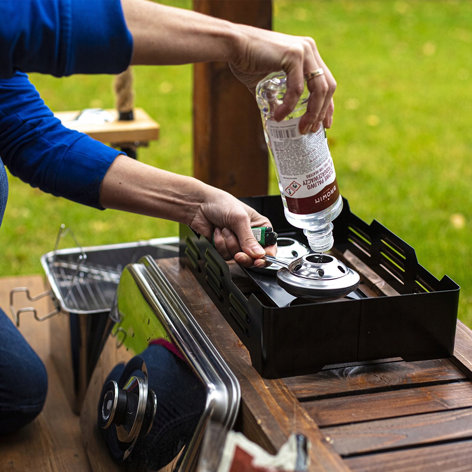 Спеціальні пальники, в які поміщається гелеве паливо без запаху і запаху, мають регулювання полум'я, що дозволяє підвищувати або знижувати температуру в коптильній камері. Контролювати цю температуру дозволяє вбудований в кришку коптильні термометр. Завдяки ньому ви дізнаєтесь, чи в оптимальних умовах відбувається копчення, чи будуть ваші улюблені страви ароматними та смачними!