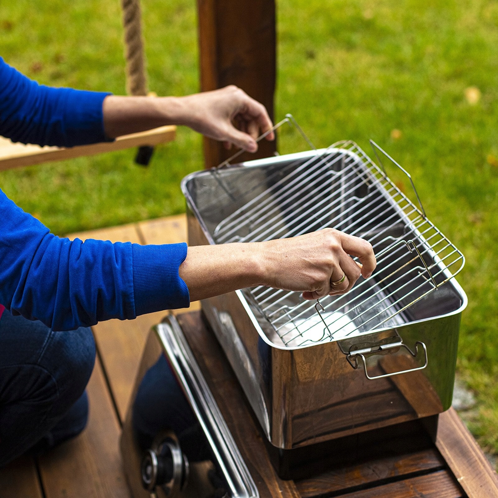 - Куріння для всіх - Вам більше не потрібно мати великий сад, щоб палити самостійно. Все, що вам потрібно, це невеликий балкон або тераса. Завдяки розмірам коптильні ви легко можете взяти її в похід або похід, а велика кількість решіток дозволить приготувати їжу для дійсно великої компанії!
