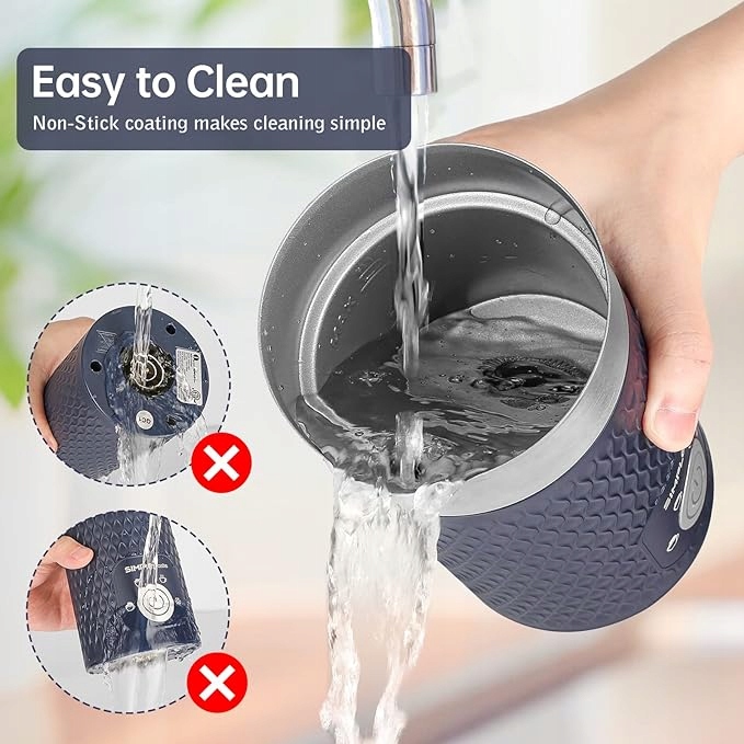Цей піноутворювач швидко створює гладку та оксамитову молочну піну для капучіно, латте, маккіато, кави з льодом та інших напоїв.