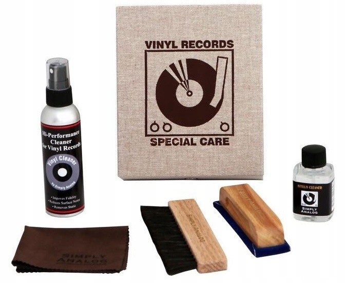 Simply Analog Special Care Deluxe — це набір для догляду та чищення програвачів і вінілових платівок, новий, у фабричній елегантній упаковці.