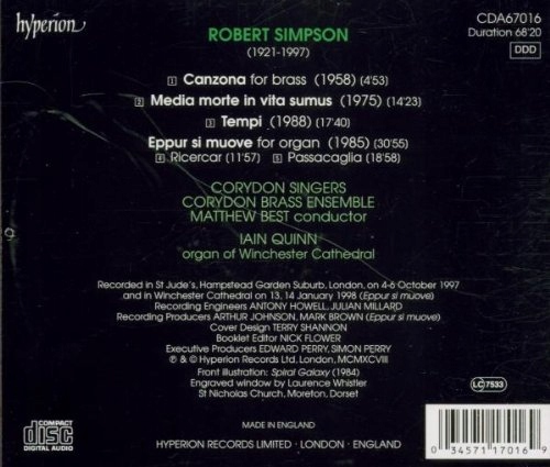 Рецензія «Іен Квін приєднується до довгої низки відданих виконавців, які зробили серію «Сімпсони» Гіперіона таким послідовним тріумфом» --Gramophone'Music of deep and searching mind. Важливий випуск. Цілеспрямоване виконання та найсучасніший звук" -- Класичний компакт-диск. Усі виконавці пишаються музикою. Любителів Сімпсона не потрібно буде переконувати, щоб придбати цей чудовий диск, але ентузіасти органної та хорової музики нашого століття також мають усі підстави ознайомитися з ним» --Hi-Fi News