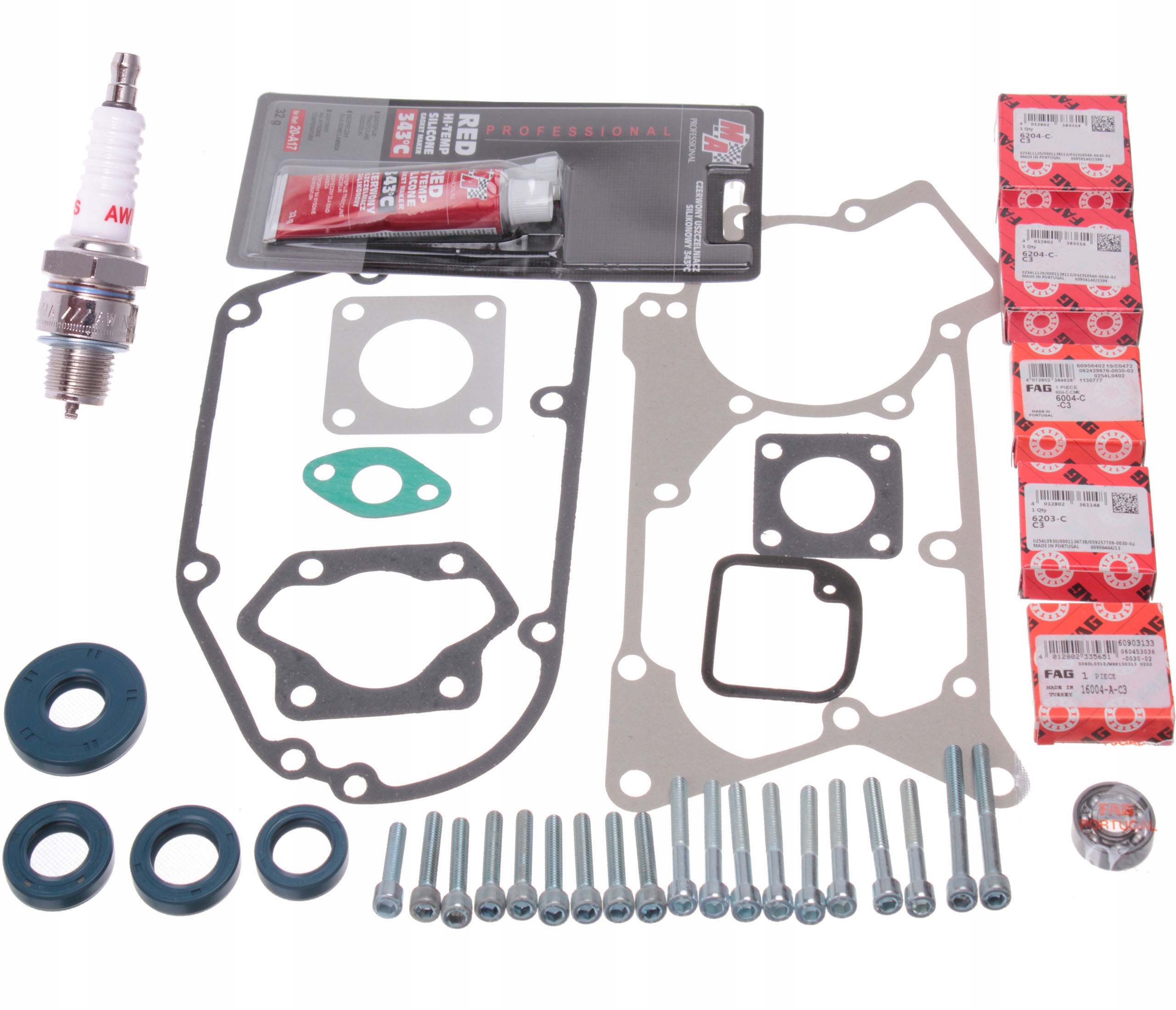 ОПИС: ЗАВОДСЬКИЙ ОРИГІНАЛЬНИЙ КОМПЛЕКТ ПІДШИПНИКІВ ДВИГУНА FAG C3 + LOY SIMERINGS MZA + SILICONE RED 342° 32g + НАБІР ПРОКЛАДОК KLINGIERYTE (КАРТОН) + ГВИНТИ ДВИГУНА IMBUS + СВІЧКА ЗАПАЛЮВАННЯ AWINA B8HS M14-260 (240). ДУЖЕ ДОБРА ЯКІСТЬ.