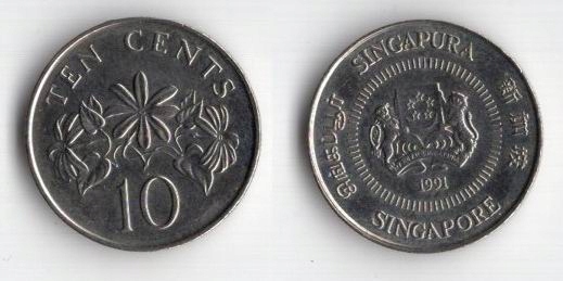 СІНГАПУР 1991 10 CENTS СТАРА ЕМБЛЕМА