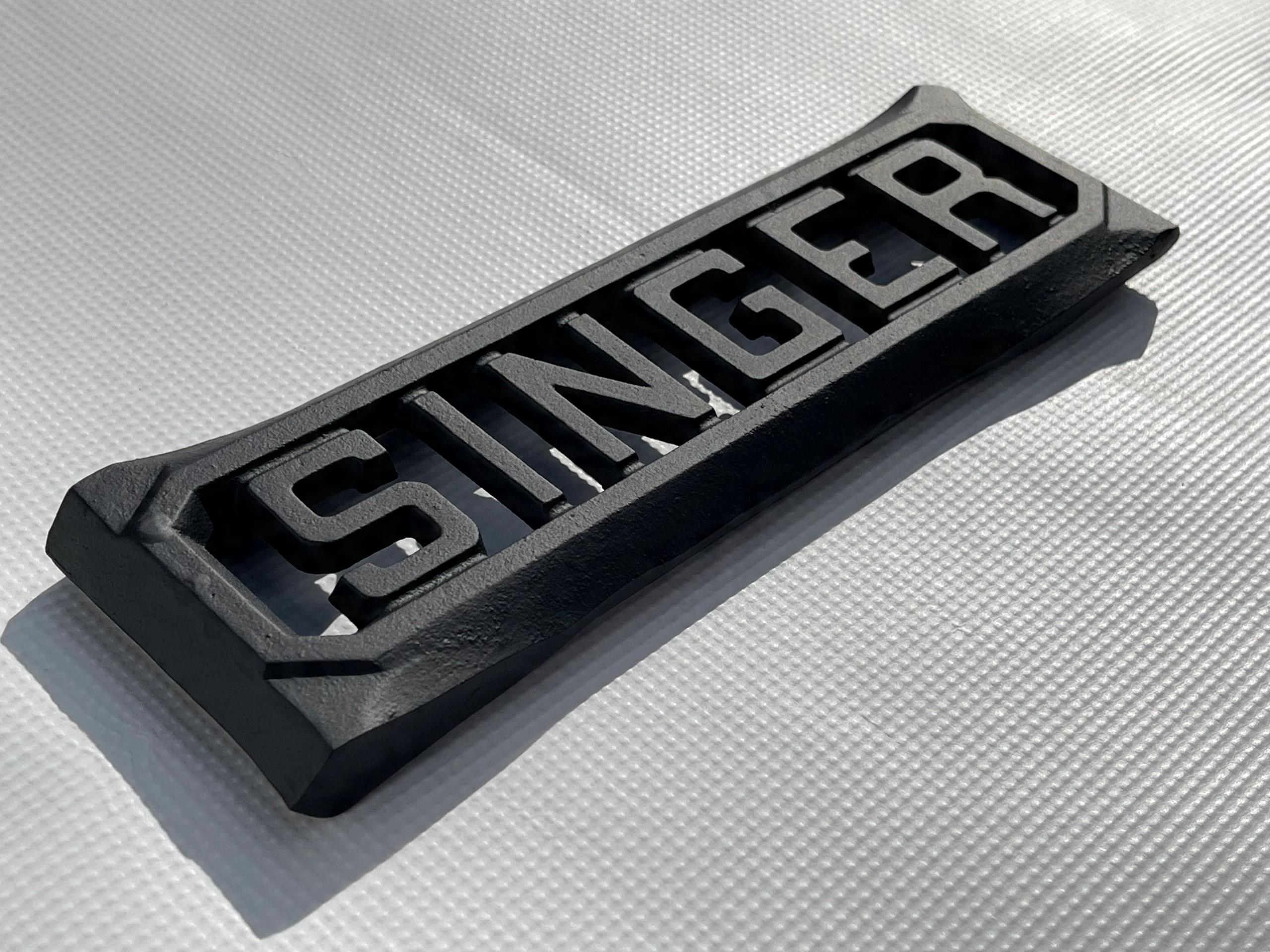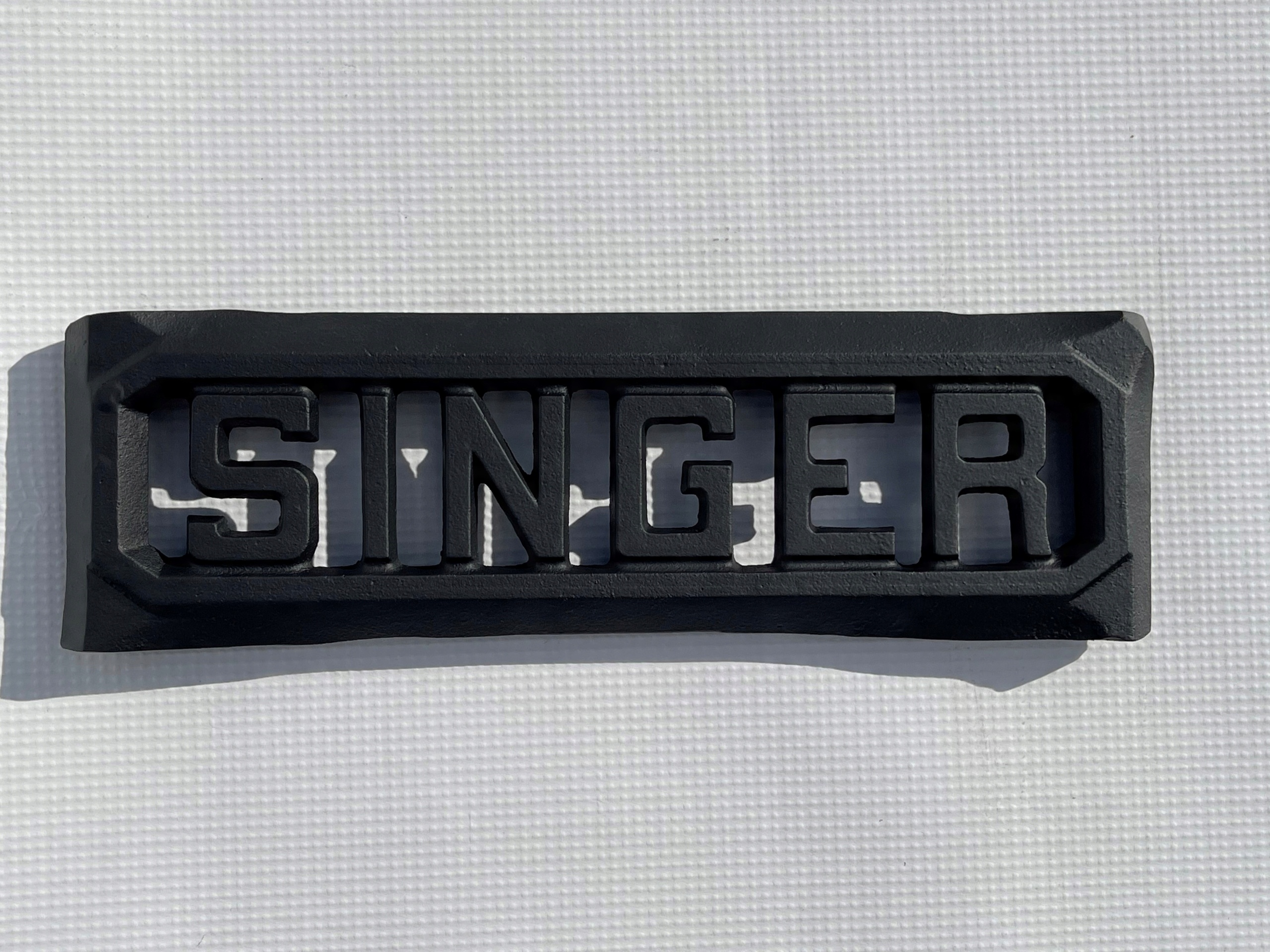 Предметом продажу є оригінальний, старий логотип SINGER. Предмет із чавуну. Взято зі старої бази швейної машинки. Дуже гарний візерунок. Стан - після ремонту, піскоструминний та пофарбований - як на фото. Ідеально підходить як цікава прикраса.