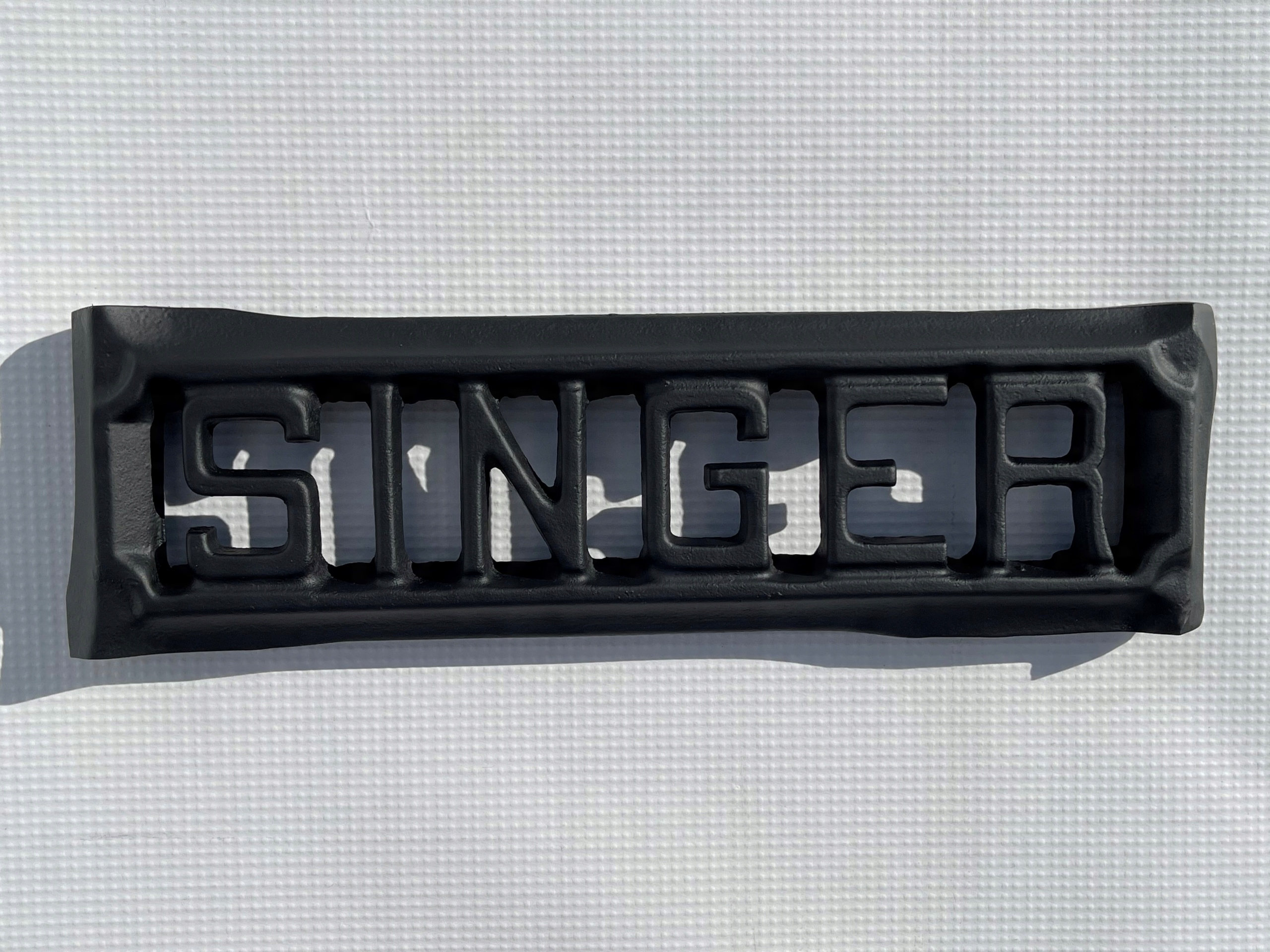 Предметом продажу є оригінальний, старий логотип SINGER. Предмет із чавуну. Взято зі старої бази швейної машинки. Дуже гарний візерунок. Стан - після ремонту, піскоструминка та пофарбована - як на фото. Ідеально підходить як цікава прикраса.
