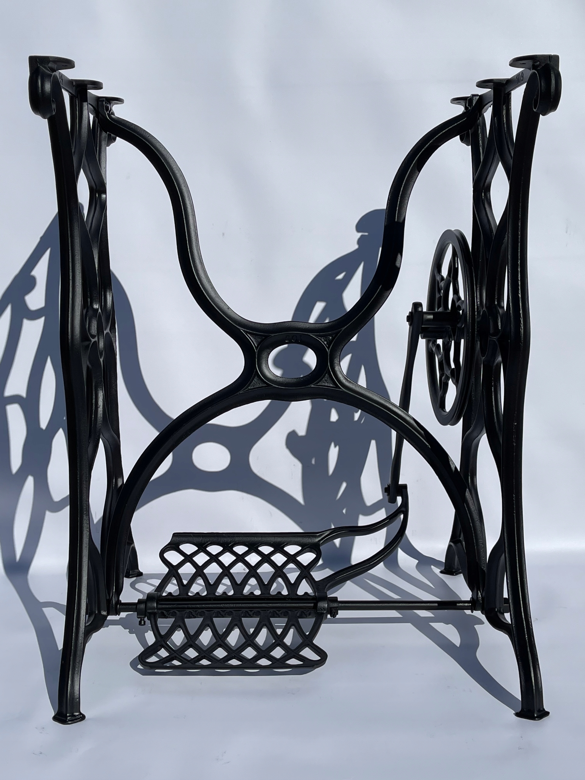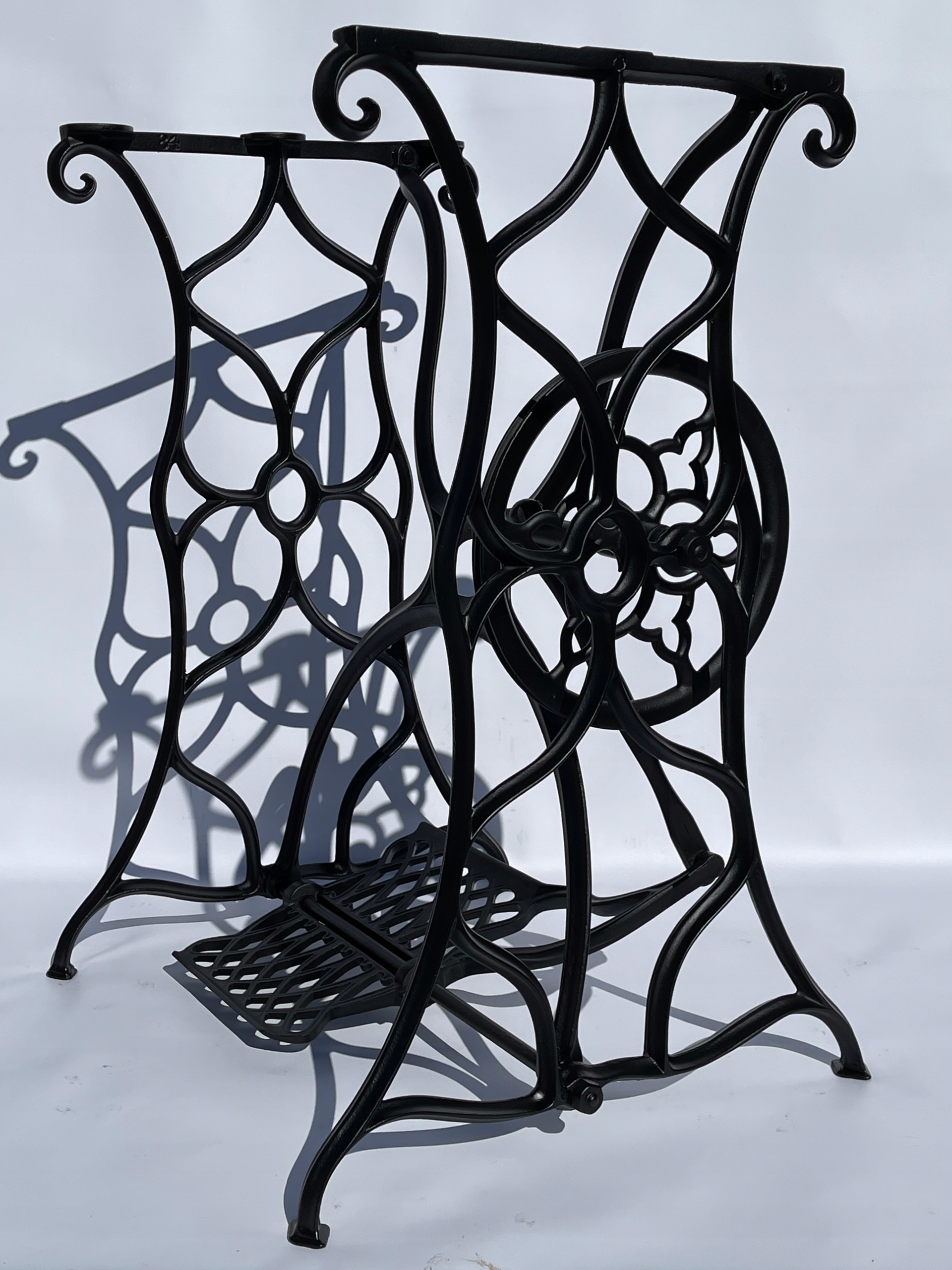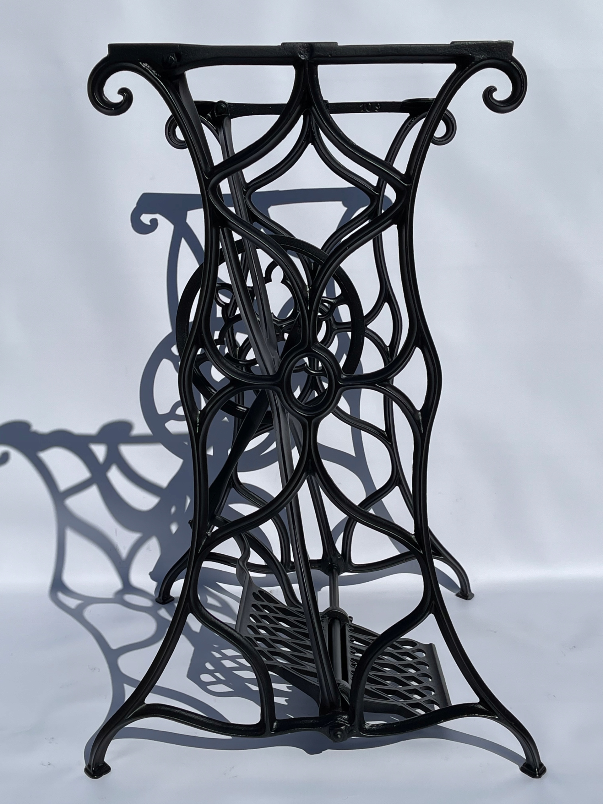 Предмет продажу стара чавунна основа від швейної машинки SINGER. Дуже гарний візерунок з квітами з боків, зустрічається рідше. Спочатку без коліс у нижній частині, тому основа буде більш стабільною та не рухатиметься.