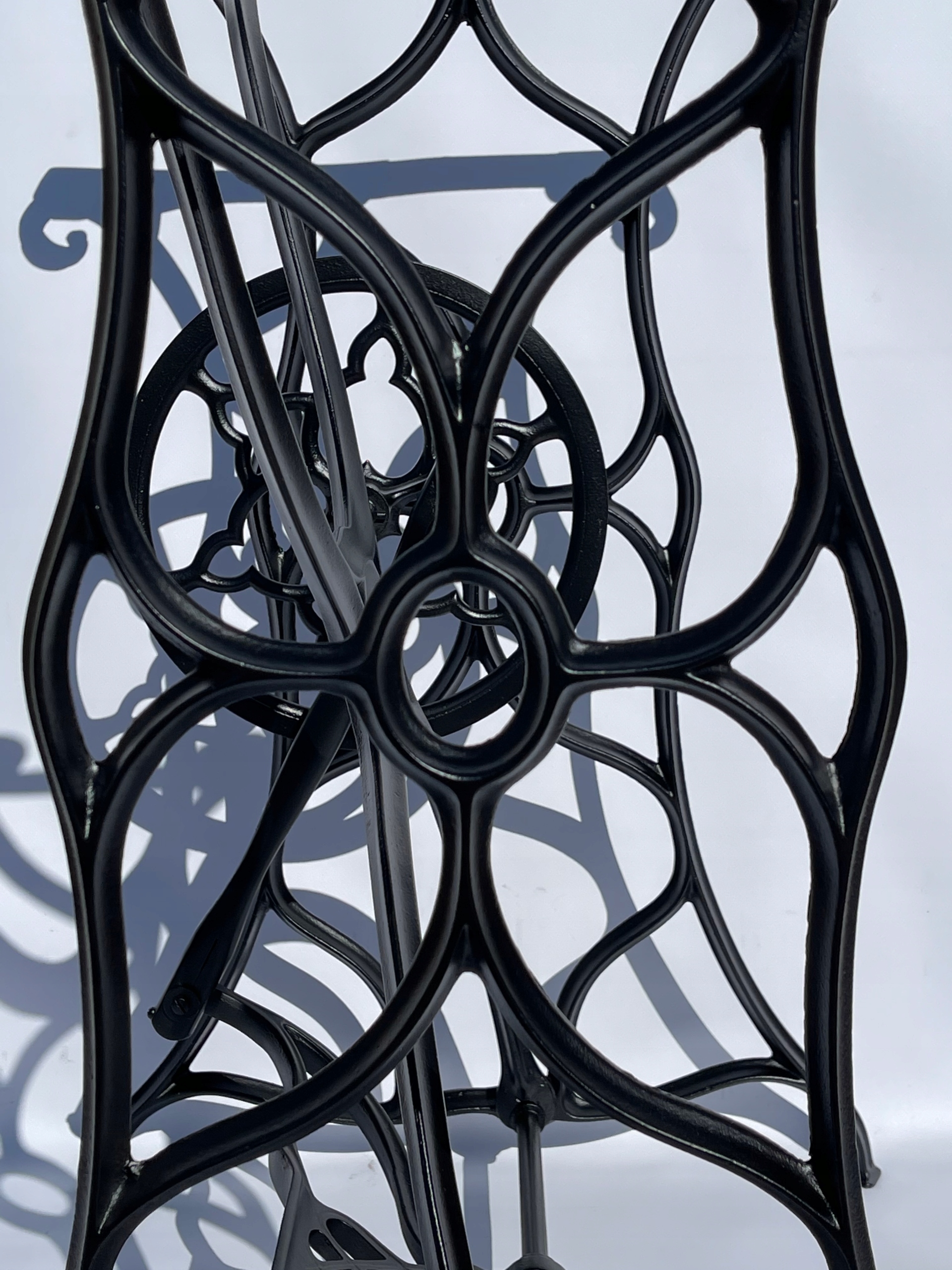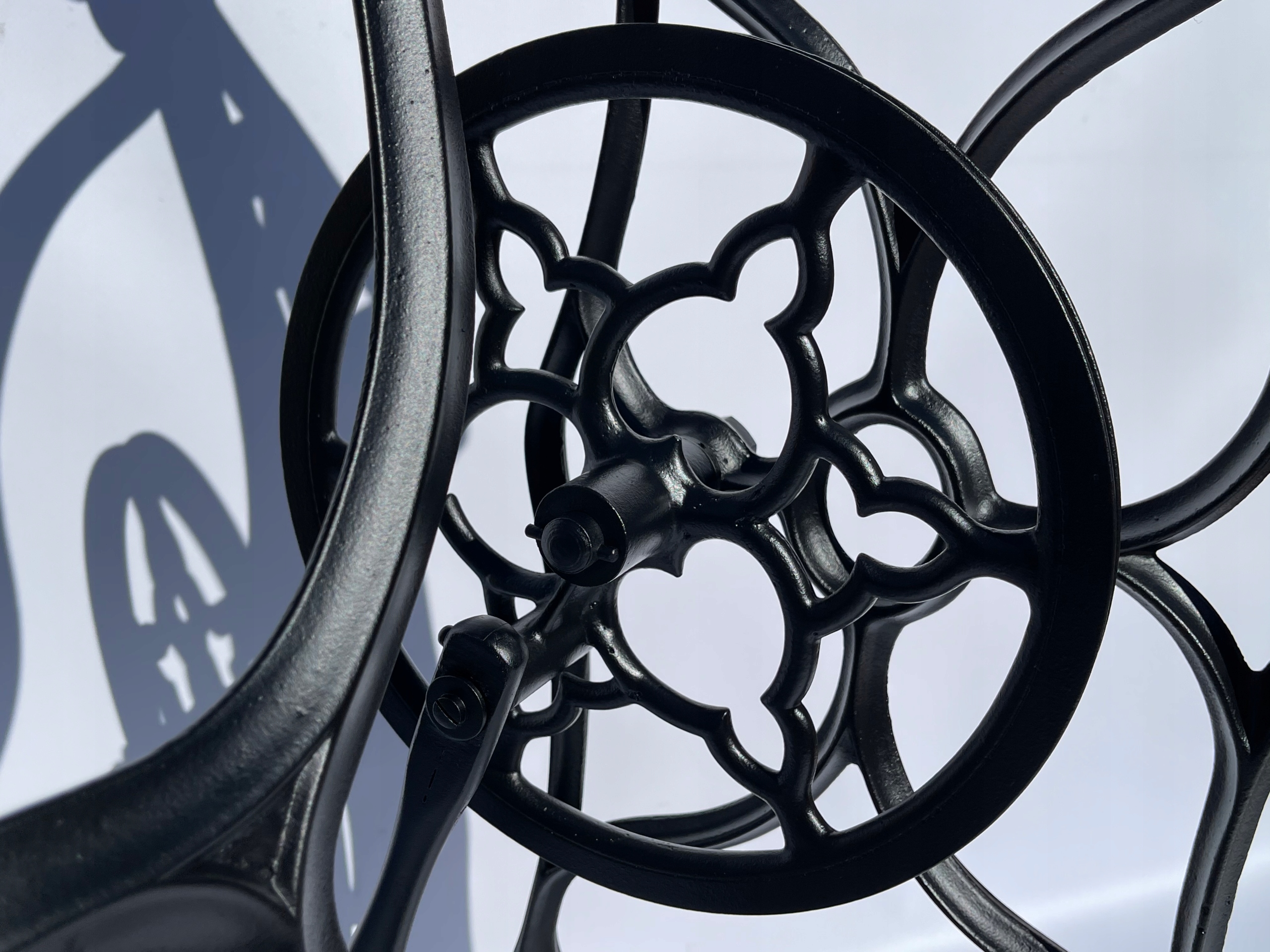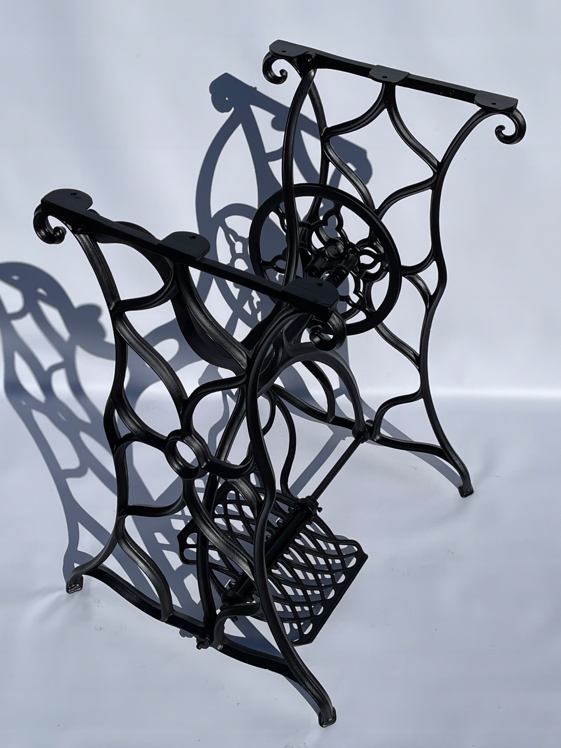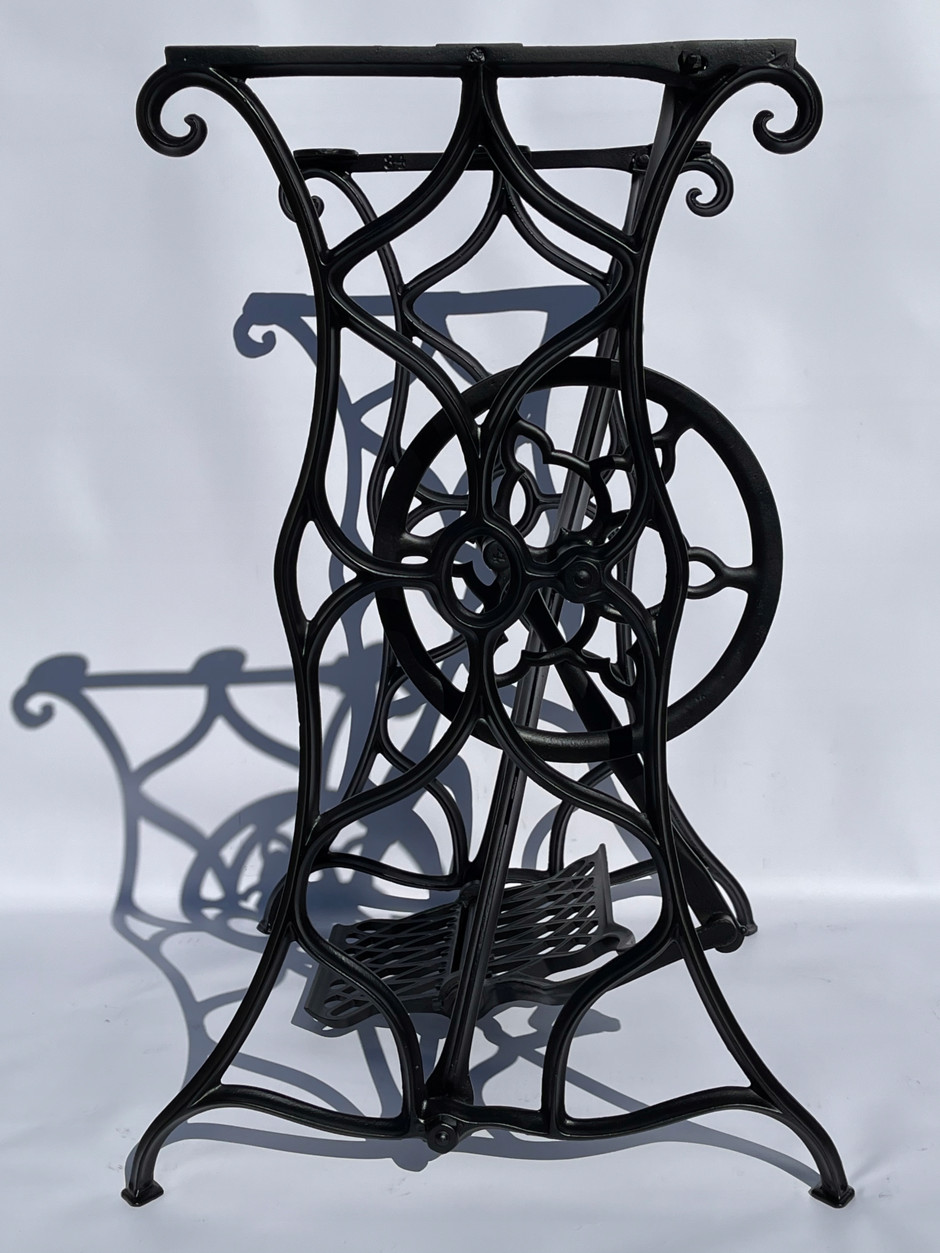 Предмет продажу стара чавунна основа від швейної машинки SINGER. Дуже гарний візерунок з квітами з боків, зустрічається рідше. Спочатку без коліс у нижній частині, тому основа буде більш стабільною та не рухатиметься.