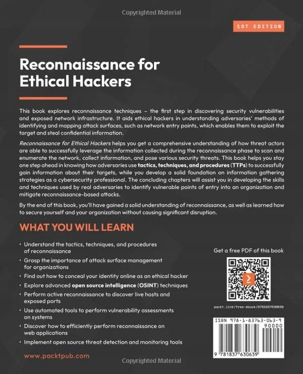 Використовуйте методи розвідки в реальному світі, щоб ефективно збирати конфіденційну інформацію про системи та мережі Купівля книги з друком або Kindle включає безкоштовні ключові функції електронної книги PDF Ця книга досліджує методи розвідки - перший крок у виявленні вразливих питань безпеки та оголеної мережевої інфраструктури. Він допомагає етичним хакерам у методах, що не підлягають супротивникам, виявлення та відображення атакувальних поверхонь, таких як точки входу в мережу, що дозволяє їм використовувати ціль та вкрасти конфіденційну інформацію. Розвідка для етичних хакерів допомагає вам зрозуміти, як суб'єкти загрози здатні успішно використовувати інформацію, згорнуту під час фази розвідки, щоб сканувати та перерахувати мережу, збирати загрози інформаційної безпеки. Ця книга допомагає вам залишатися на крок вперед у тому, щоб знати, як противники використовують тактику, методи та процедури (ТТП), щоб успішно отримати інформацію про свої цілі, в той час як ви розробляєте міцну основу щодо інформації про стратегії як професії кібербезпеки. Заключні глави допоможуть вам у розвитку навичок та методик, які використовуються реальними супротивниками для виявлення вразливих пун вступу в організацію та пом'якшення нападів на основі розвідки. Наприкінці цієї книги ви отримали міцне розуміння розвідки, а також дізнаєтесь, як захищати себе та свою організацію, не спричиняючи значних порушень. What you will learn the tactics, Techniques, and Procedures of Reconnaissance Grarasp the Importance of Attack Surface Management for Organizations Find Out Out How to Conceal Your Identity Online Online As an Ethical Hacker Explore Advanced Open Source Intelligence (Osint) Techniques (Osint) Perform Active Reconnaissance to Discover Live Hosts and Exposed Ports Use Automated Tools to Perform VulneraBility Assessments on Systems Discover How to Effistly Perform Reconnaissance on Web Applications Open Source Threat Інструменти виявлення та моніторингу wh ця книга призначена Якщо ви є етичним хакером, тестером проникнення, червоною командою або будь-якою професією кібербезпеки, яка прагне зрозуміти вплив нападів на основі розвідки, як вони відбуваються та які організації можуть, то ця книга для вас. Фахівці з кібербезпеки знайдуть цю книгу, яка використовується у визначенні поверхні атаки їх організацій та активів у своїй мережі, одночасно розуміючи поведінку противників. Таблиця змісту Основи розвідки Створення розвідувальної лабораторії Розуміння пасивного розвідувального домену та ІНСПОНТАЦІЙНИХ ОРГАНІЗАЦІЙНИХ ІНТЕРПАНІЙСЬКИХ ІНТЕРПАНІВ, люди та сигнали розвідки, що працюють з Activeisan, що виконують оцінки вразливості, заглиблюючись у розвідку веб -сайту, що реалізує реконструкцію систем моніторингу та виявлення