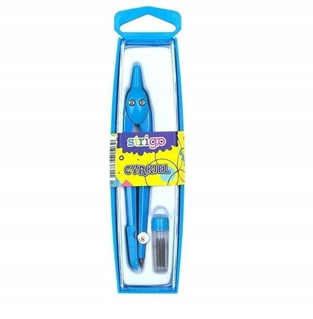 Сині циркулі STRIGOC. Металеві циркулі з графітовим наконечником у пластиковій упаковці. У комплект входить набір із 3 додаткових графітів. Колір: синій