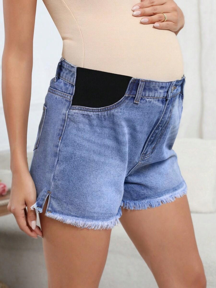 Сині короткі класичні шорти з вагітності з бавовною Shein 36
