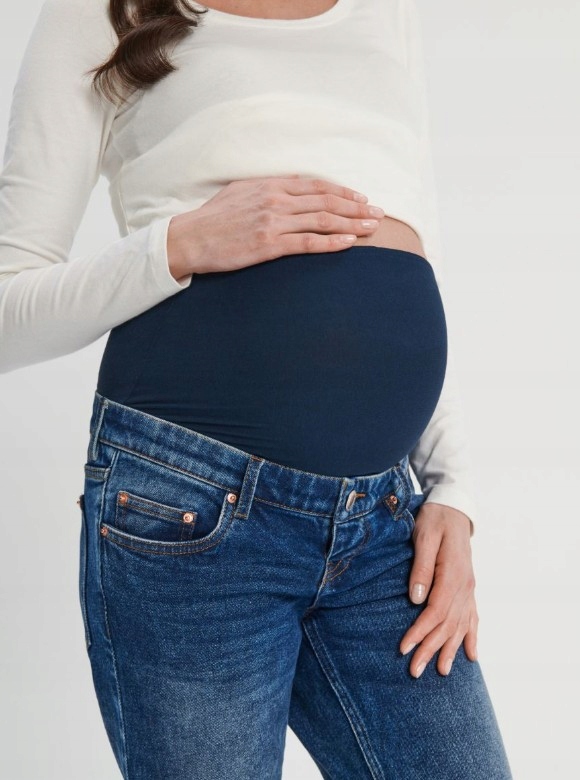Сині штани вагітності джинси пряма нога високий стан бавовна 36