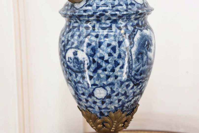Синій порцеляновий графин - Порцеляна + Бронза - Подарунок - Квіти
