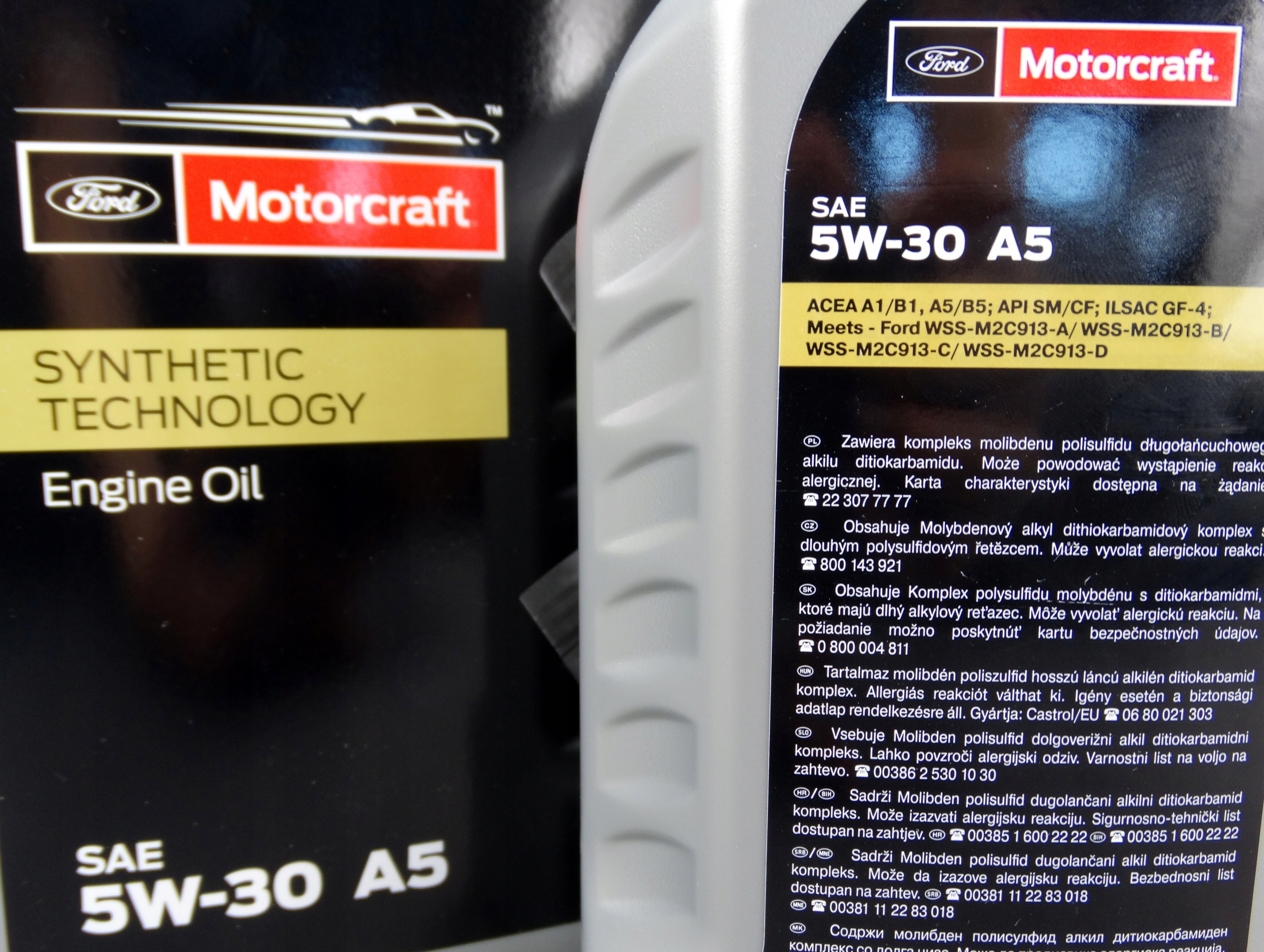 FORD MOTORCRAFT A5 5W30 повністю синтетичне моторне масло для меншої витрати палива та високої продуктивності. Призначений для бензинових і дизельних двигунів, в тому числі обладнаних сажовим фільтром DPF. Його слід використовувати відповідно до інструкції з експлуатації автомобіля, щоб відповідати відповідним вимогам щодо якості та в’язкості.