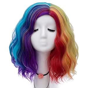 Синтетична веселка барвиста жіноча перука довжиною 40 см до косплей